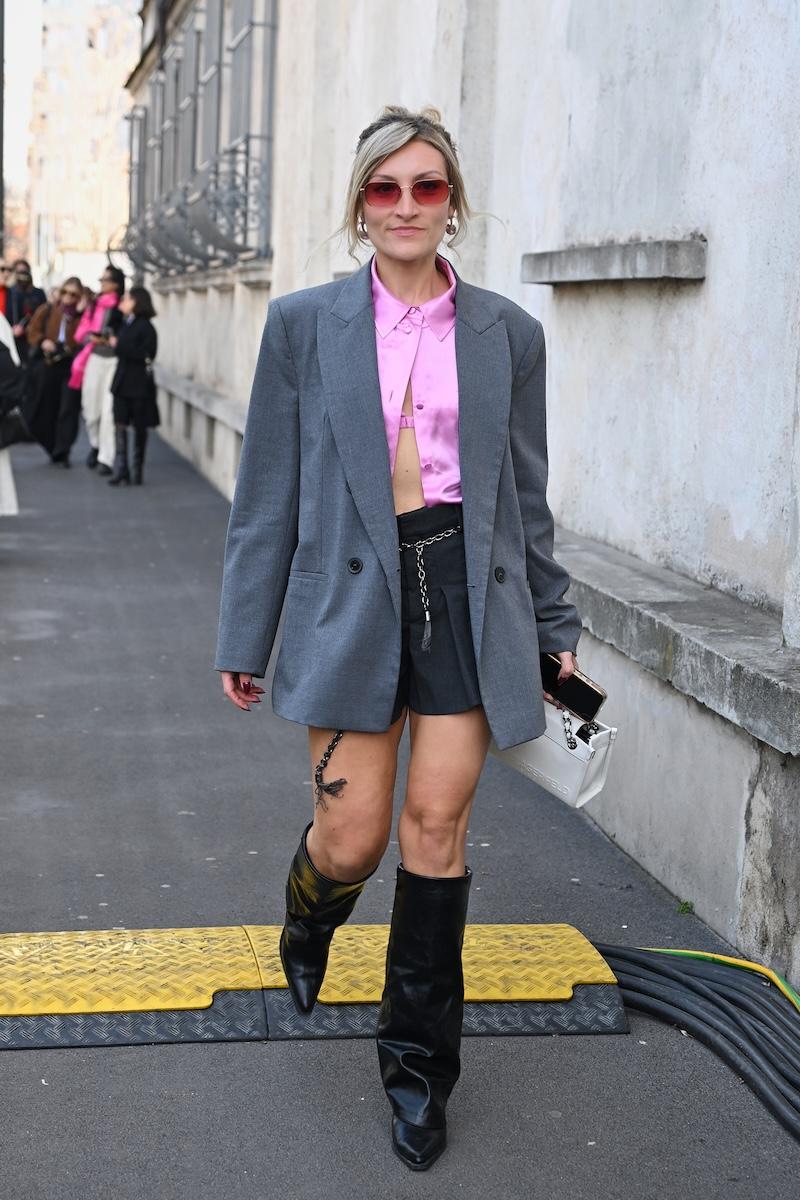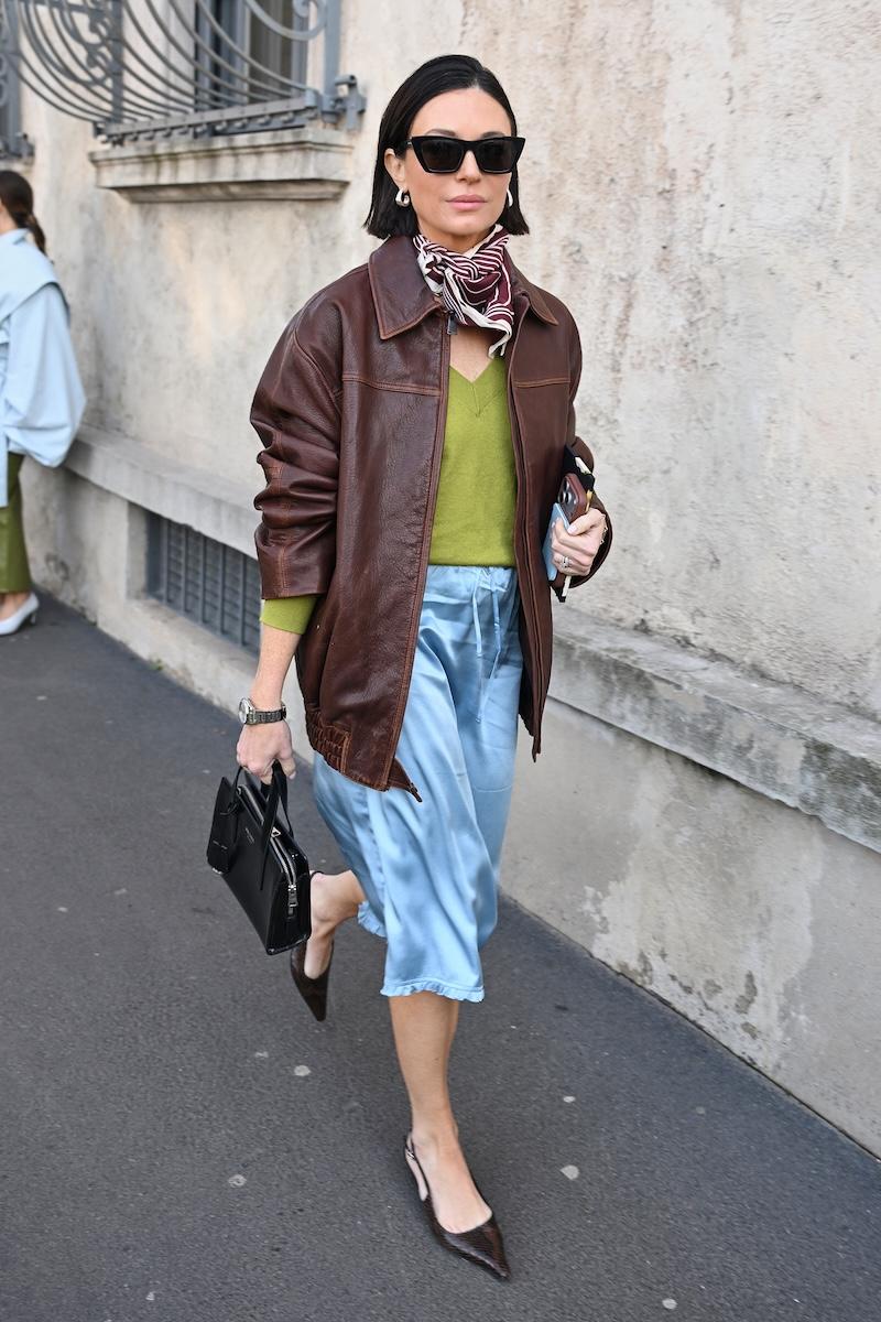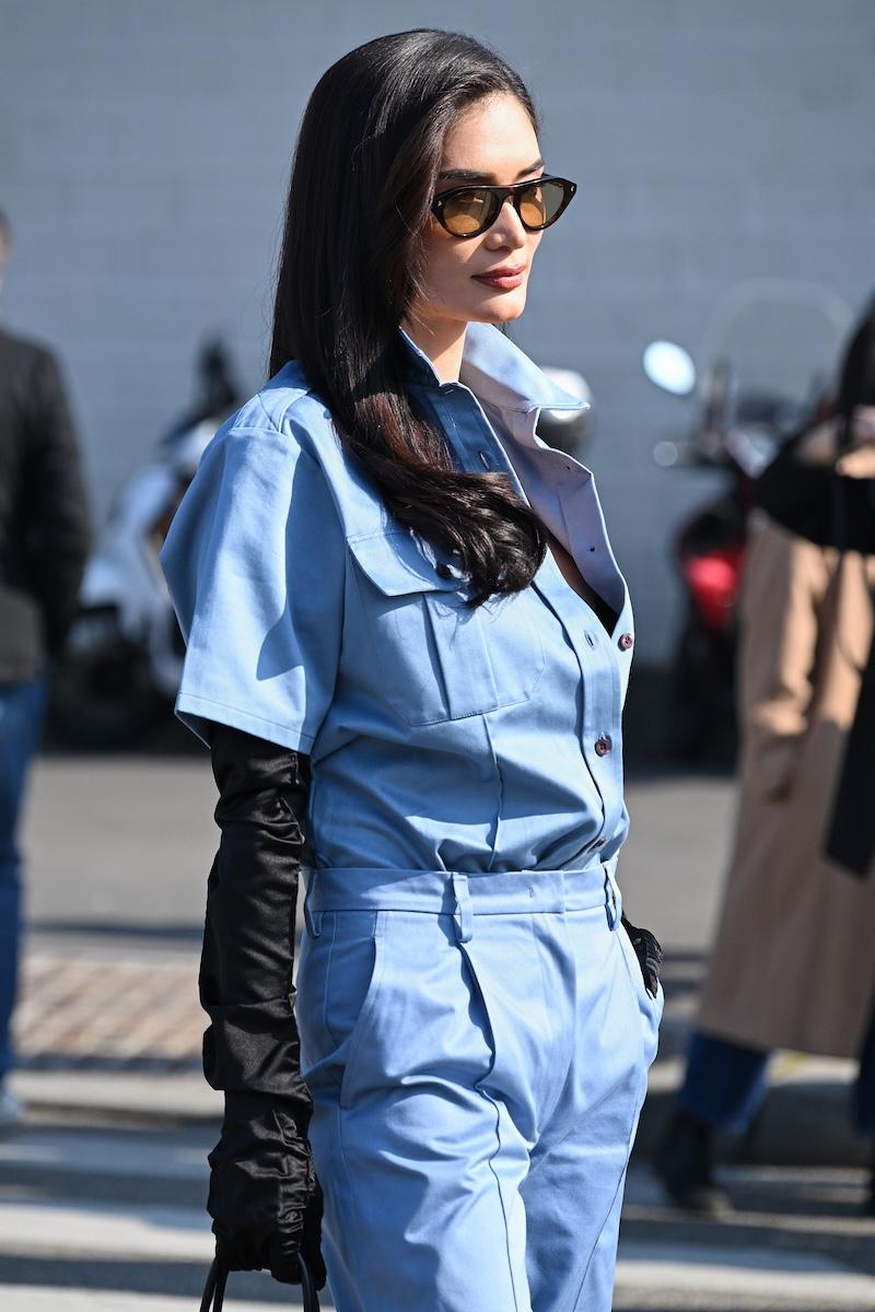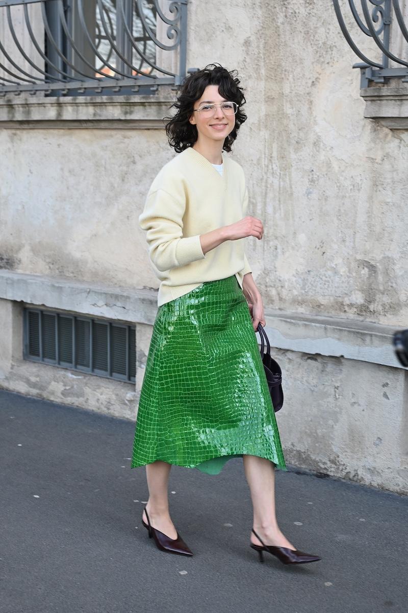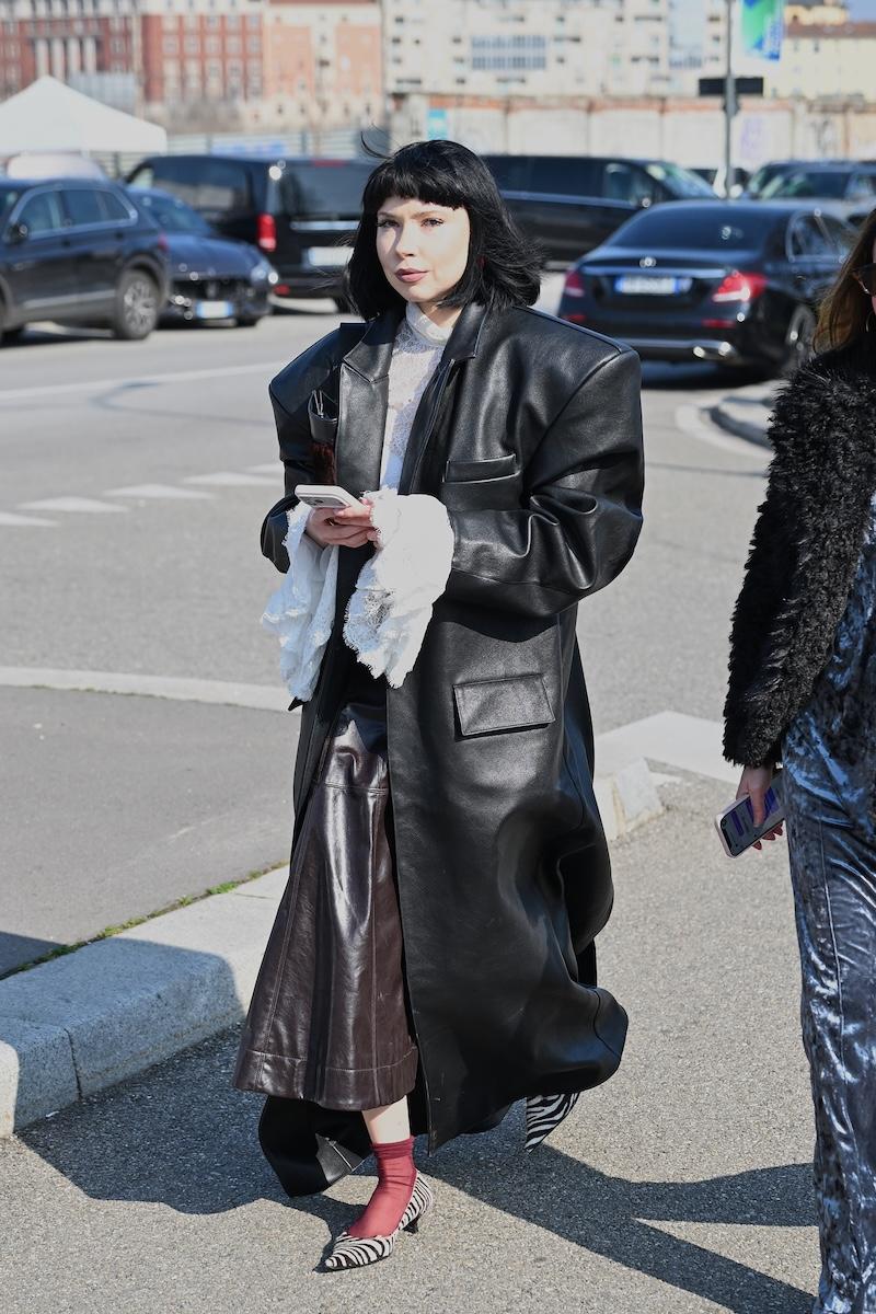 「プラダ(PRADA)」は、2026-27年秋冬コレクションをミラノで現地時間2月26日に発表した。会場周辺は、色とりどりの装いのゲストで溢れた。体を締め付けない1950年代風のドレス、タフタ素材のバブルスカート、アンダーゴムのないブラトップなど、“解放”をテーマにした26年春夏コレクションのアイテムをいち早く取り入れた装いが目立つ。パステルのカラーブロッキングが描くフェミニンなムードに対し、軍服を再解釈した無骨なスタイルがストリートで交差した。