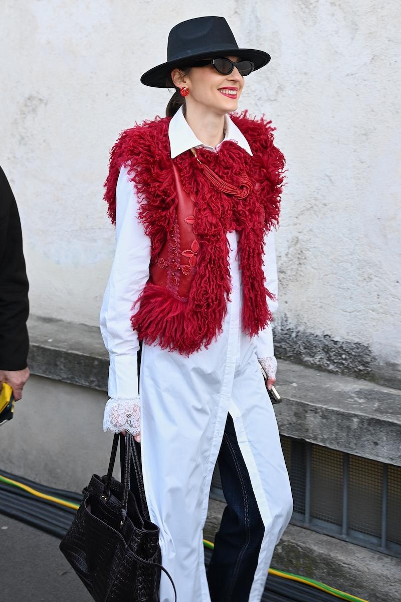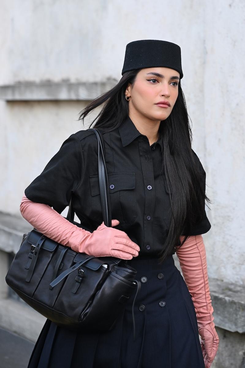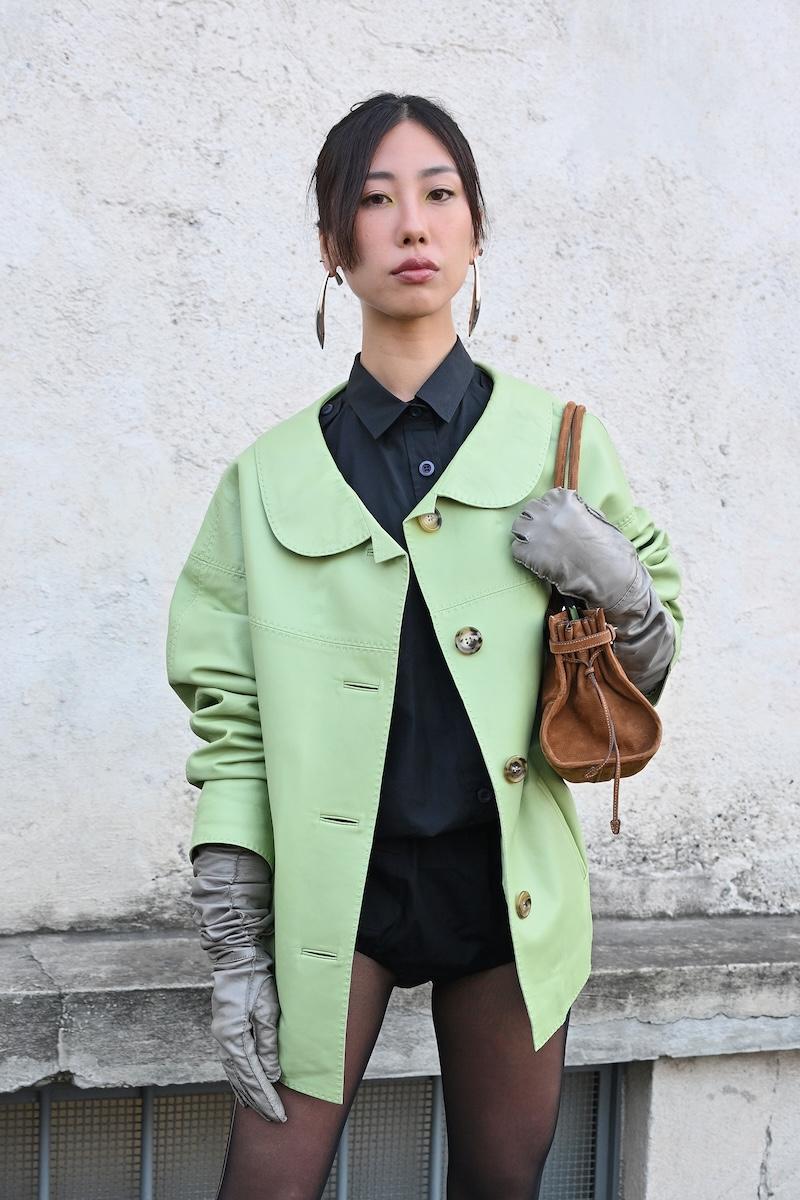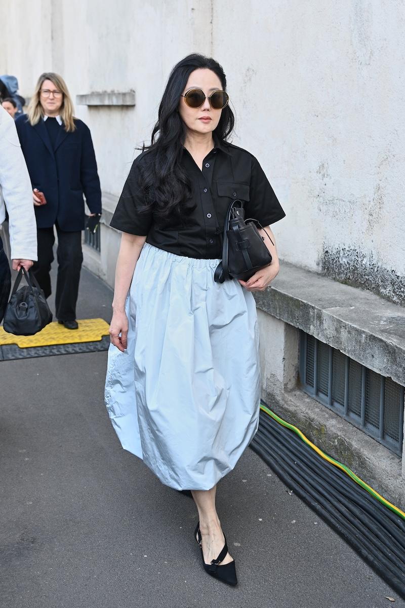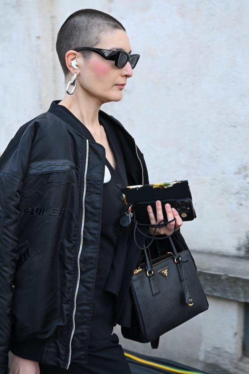 雰囲気は異なれど、多くのゲストのアクセサリーは共通している。鮮やかな色彩のオペラグローブに、足元はフラットを封印。パンプスからブーツまでスティレットヒールが主流だ。バッグの所持率も高く、ハンドルの長い“パサージュ”と、巾着タイプの“ウィッシュ Re-Nylon ポーチ”が高い支持を集めた。特に後者は、昨今では稀になった10万円台で購入できるエントリー商品として、ヒットの予感を漂わせている。