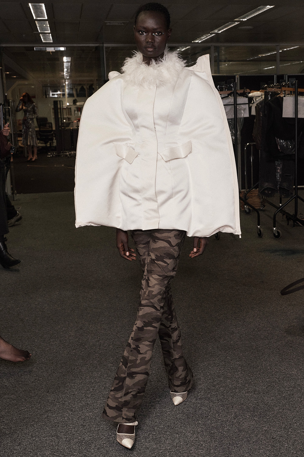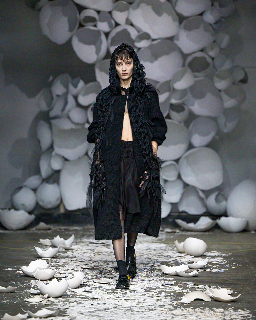 今季のロンドンを象徴するのは、20周年を迎えた「アーデム(ERDEM)」。ビクトリア朝のシルエットやロマンチックな刺しゅうといった「アーデム」のらしさ、または英国的な美的感覚を解体し、現代の文脈へと編み直していく—そんな「アーデム」のアティチュードにロンドンの独立系ブランドが目指すべき成熟の姿を見ることができました。
