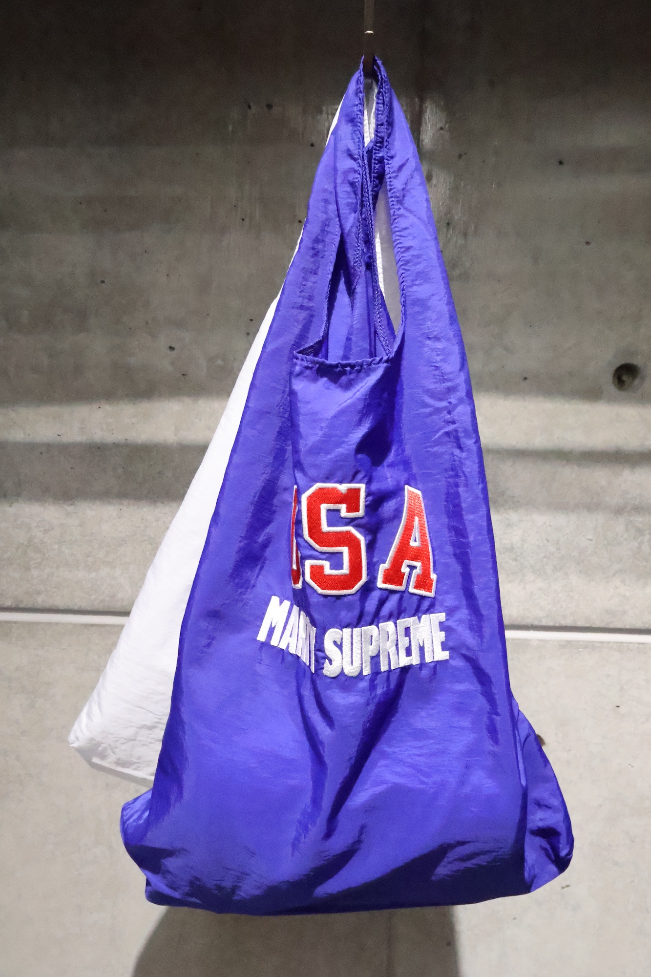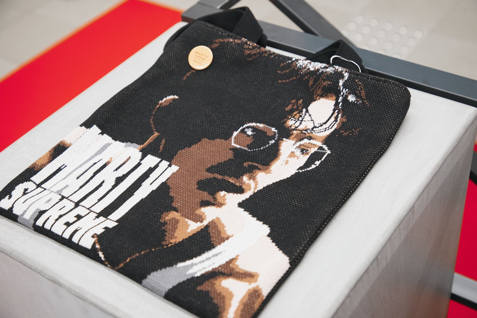 バッグは編み物☆堀ノ内がデザインしたトートバッグやマーティが着ていたアメリカ代表のユニホームから着想を得たナイロンバッグ、ロゴをプリントしたトートバッグ(2型)をそろえる。