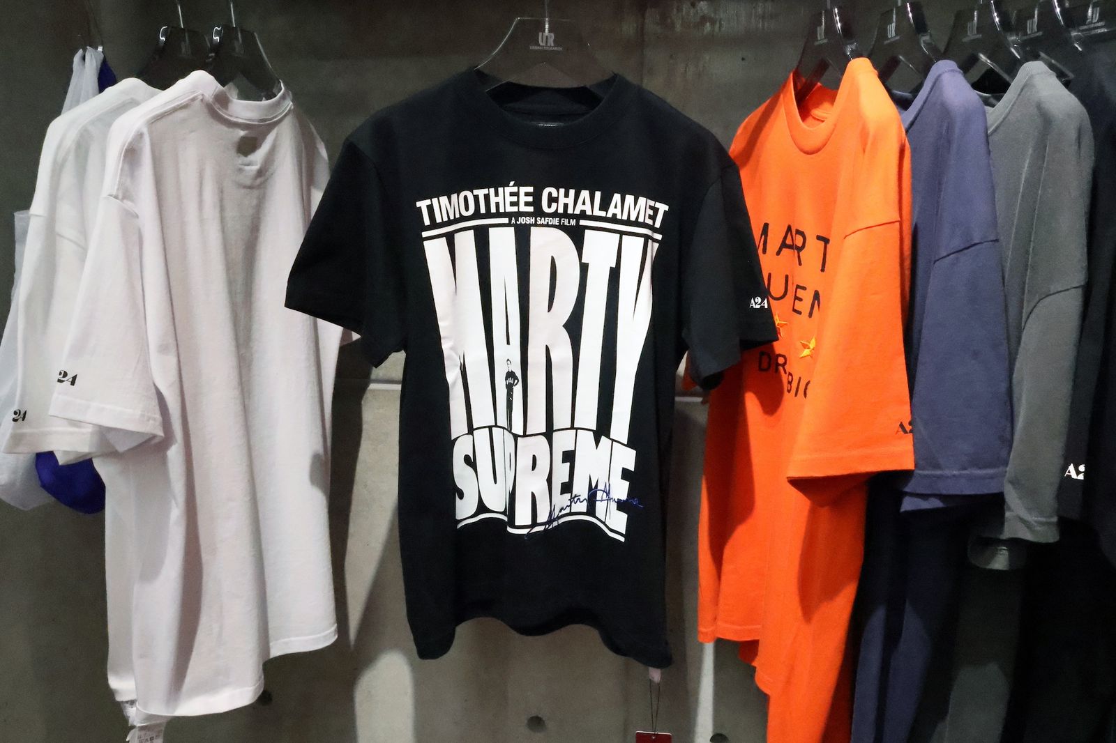その他、ポップアップでは、A24関連商品も販売する。A24のロゴTシャツのほか、「マーティ・シュプリーム」のジョシュ・サフディ監督の弟、ベニー・サフディが監督を強めた「スマッシング・マシーン」(5月15日公開)のTシャツやロンTも販売。他のA24作品のTシャツ、トランプ、ピンズ、書籍など、実際に手に取る機会が少ない貴重なアイテムもそろえる。
