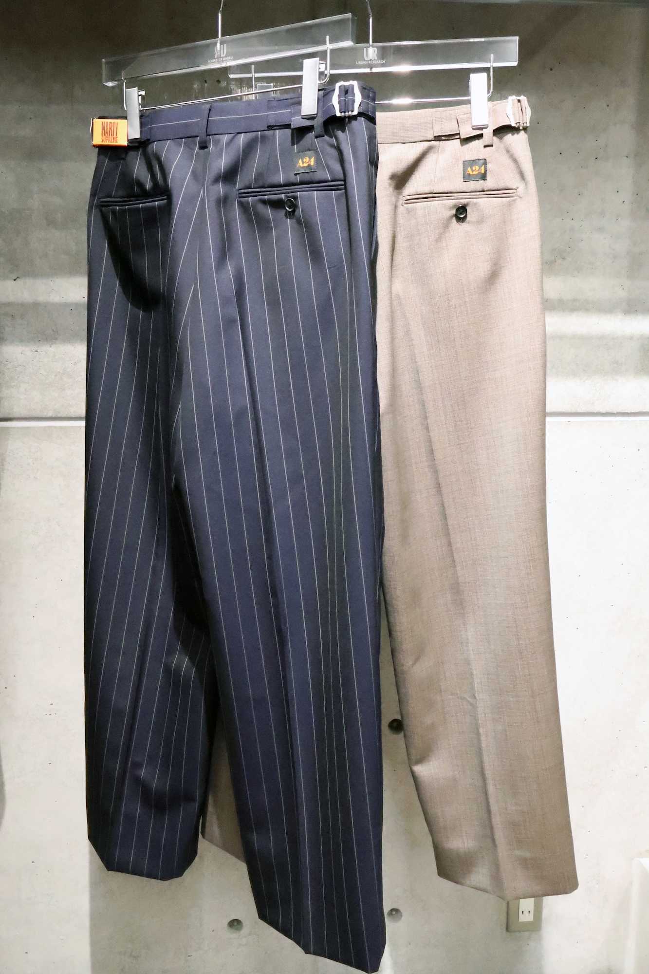 スラックスは、劇中でマーティが着ている衣装をイメージ。バックのA24タグがアクセントとなっている。