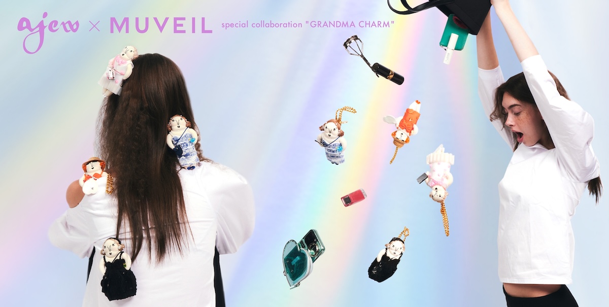 バッグ・スマホケースブランドの「エジュー(AJEW)」は、「ミュベール(MUVEIL)」のミューズを象った“グランマチャーム”との初コラボレーションアイテムを発売する。3月26日に「エジュー」公式オンラインストア、27日にルクア大阪・ルクア1階で販売する。さらに、3月11日から開催する「エジュー」伊勢丹本店ポップアップで先行販売も行う。数量限定のため、なくなり次第終了とする。