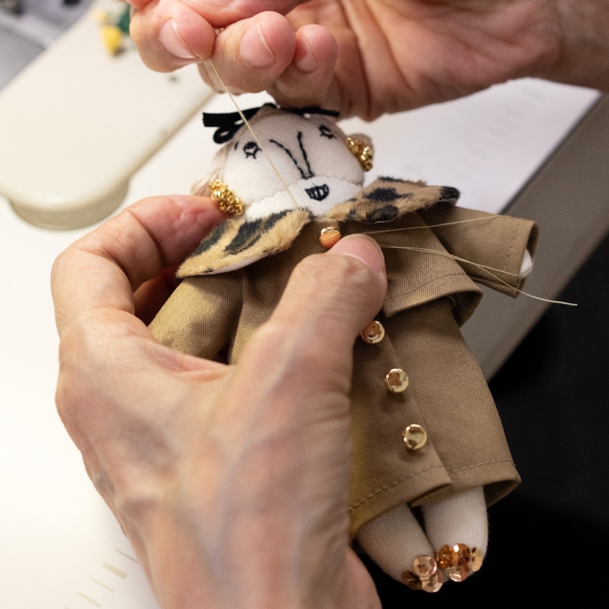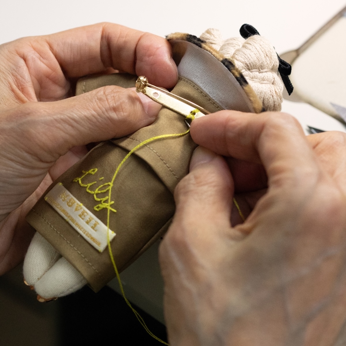 今回が初となる「ミュベール」とのコラボレーションでは、「エジュー」のシグネチャーアイテムと「ミュベール」のアイコンキャラクターである“グランマチャーム”を掛け合わせたスペシャルチャームを展開する。両ブランドに共通する手作業によるものづくりを大切にし、素材選びから縫製、仕上げに至るまで取り組んできた、ぬくもりのあるプロダクト作りに共鳴し、コラボレーションが実現した。