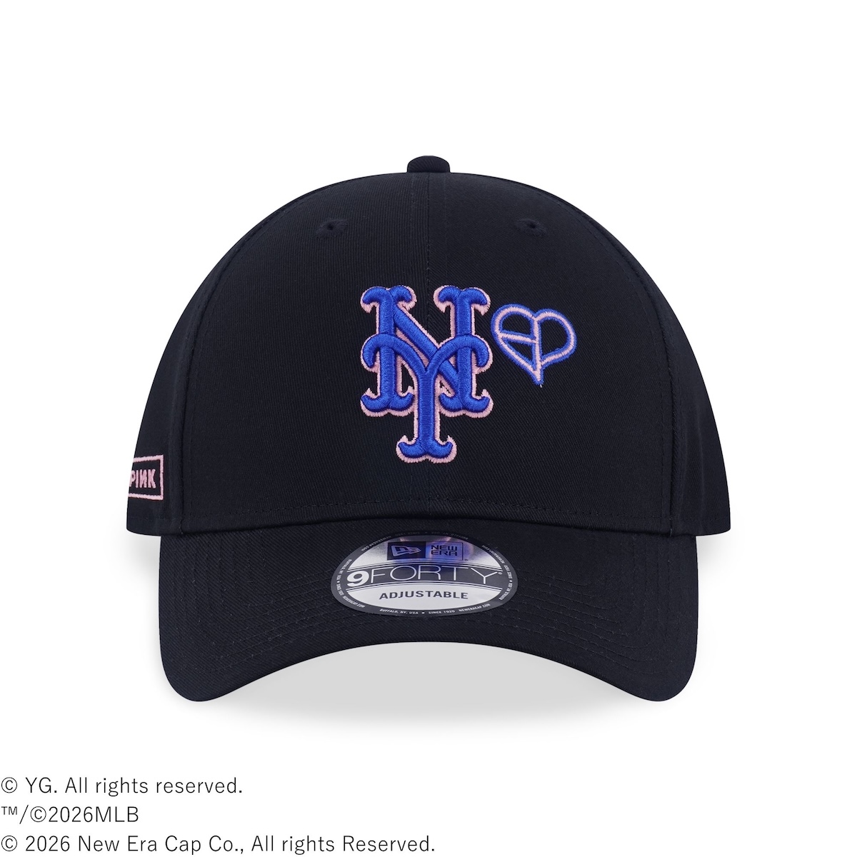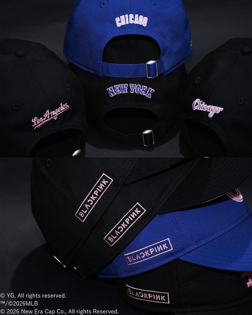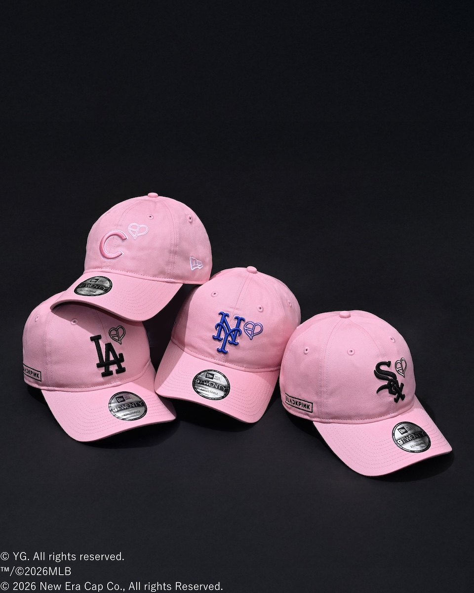 本コレクションは、MLBのロサンゼルス・ドジャース、シカゴ・カブス、ニューヨーク・メッツ、シカゴ・ホワイトソックスの4チームをフィーチャーし、フロントにBLACKPINKのハートロゴをレイアウトした。右サイドには、BLACKPINKのボックスを配置し、アイコニックなデザインに仕上げている。ラインアップは、“9 フォーティー”(各1万3200円)と“9 トゥエンティー”(各1万3200円)をそろえる。