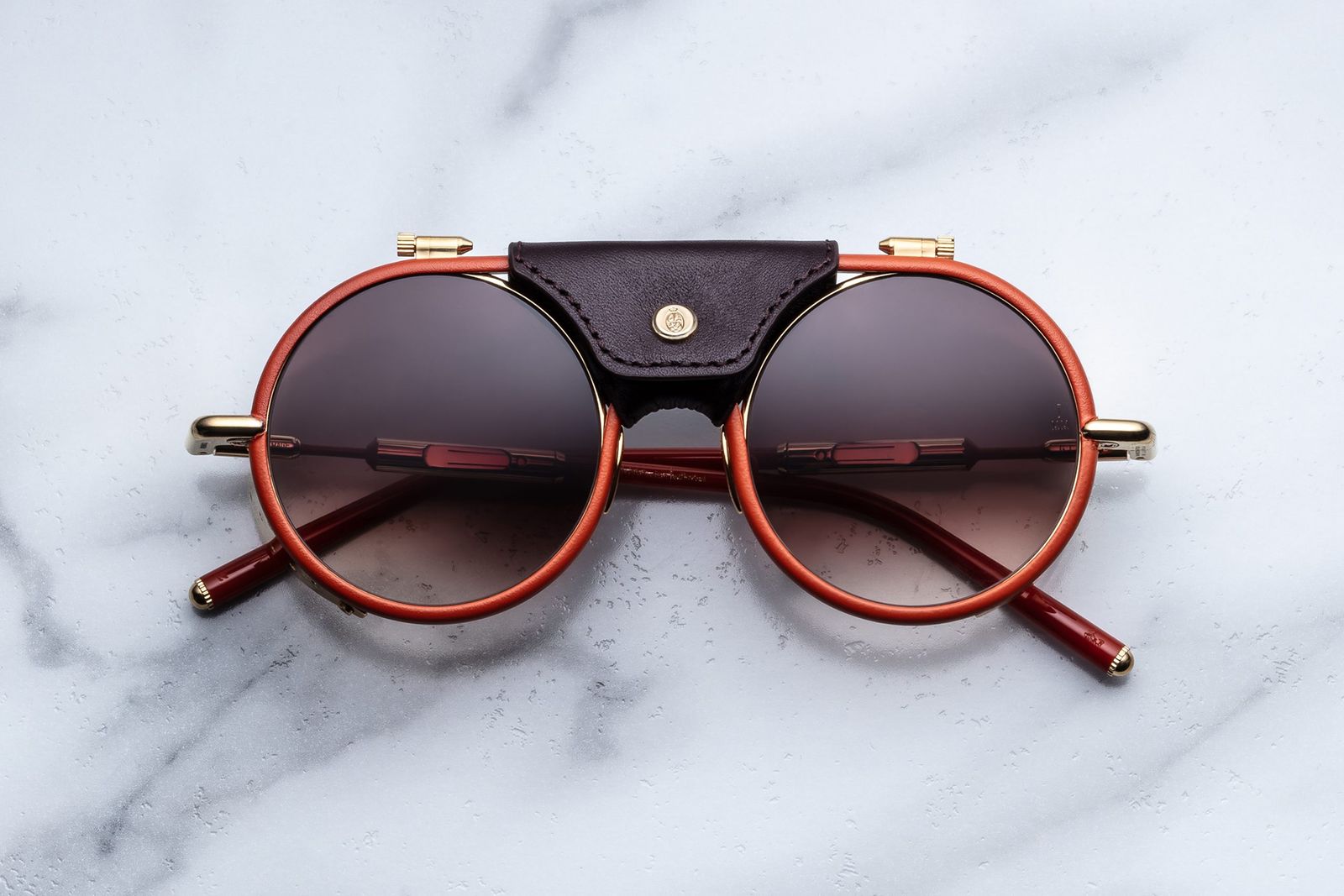 アイウエアはコレクターズ仕様のオレンジボックスに収納し、「ロッキーマウンテン フェザーベッド」のベストをイメージしたケースや大判クリーニングクロス、職人の署名とシリアルナンバー入りのカードが付属する。また“グレイシャー”にはナイロン製グラスコードも同梱。アパレルはカスタムダストバッグに収めて販売する。