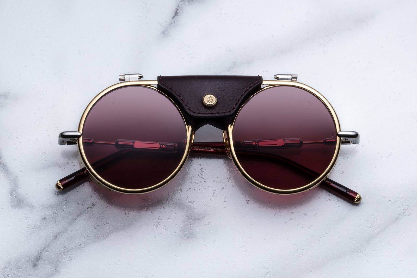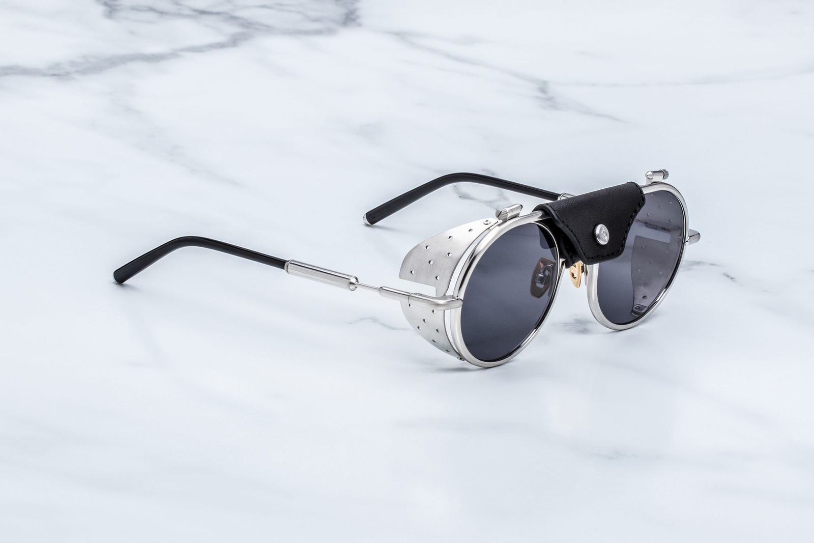 ナビゲーターデザインの“ティーウィノット(TEEWINOT)”は植物由来アセテートを使用し、5色で展開。1970年代の登山用サングラスに着想を得た“グレイシャー(GLACIER)”は100%βチタン製で、パンチング加工のアイシールドやレザーのセンターピースを備える。4食展開で、テンプルはハンドペイントのエポキシチップを施したカールケーブとスムーズアセテートスリーブの2種類を用意する。価格はそれぞれ19万2500円。