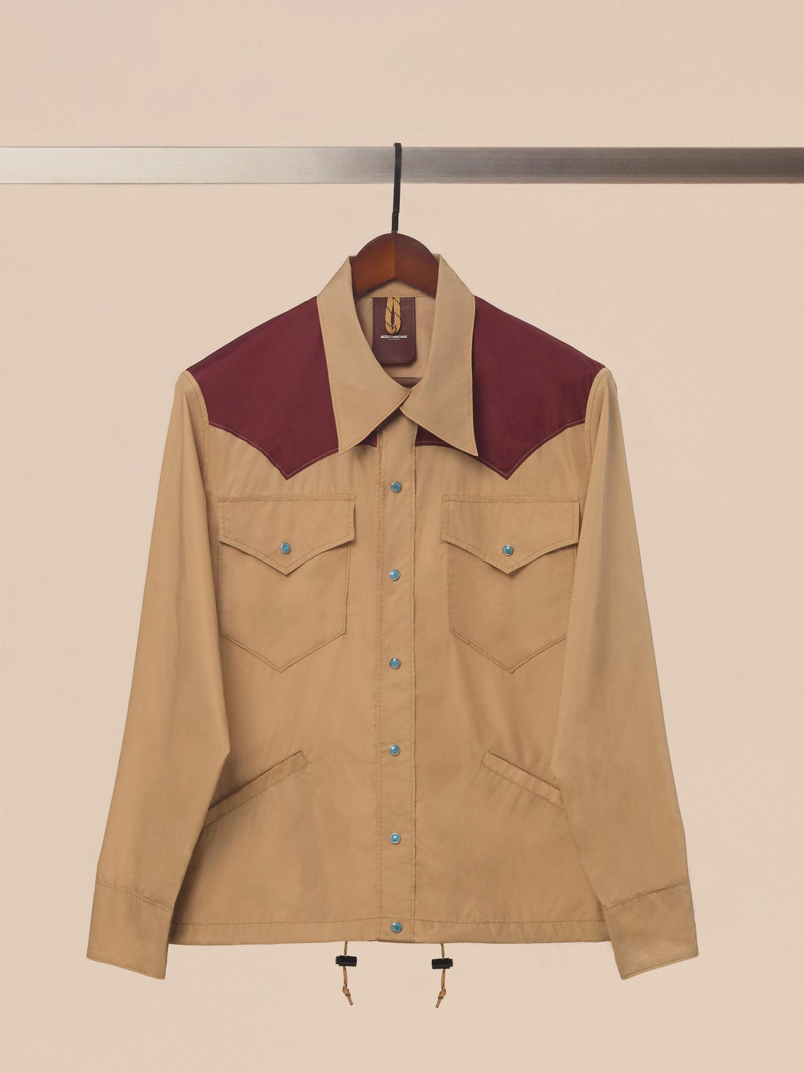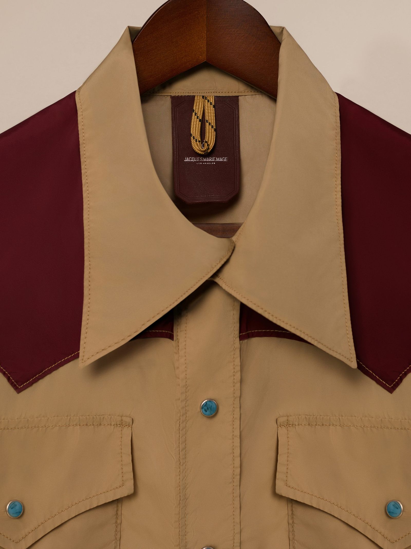 欧州産ダウンを封入したダウンベスト “クラウドヴェイル(CLOUDVEIL)”は「ジャック マリー マージュ」のシグネチャーカラーであるボルドーカラーと、ヴィンテージの「Keep It Truckin’」パッチが特徴だ。価格は16万5000円。“ガーネットキャニオン(GARNET CANYON)”はウエスタンヨークやターコイズ樹脂のスナップボタンが目を引くウインドシャツ。価格は10万5050円で、どちらも日本製だ。