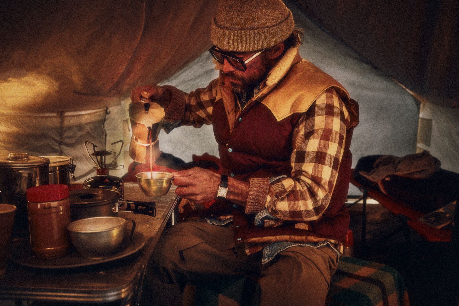同コレクションは、1970年代の登山家コミュニティーから着想したもの。アメリカ西部のアウトドア文化と日本の職人技を融合させた、アイウエアとアウターウエアを2型ずつそろえた。