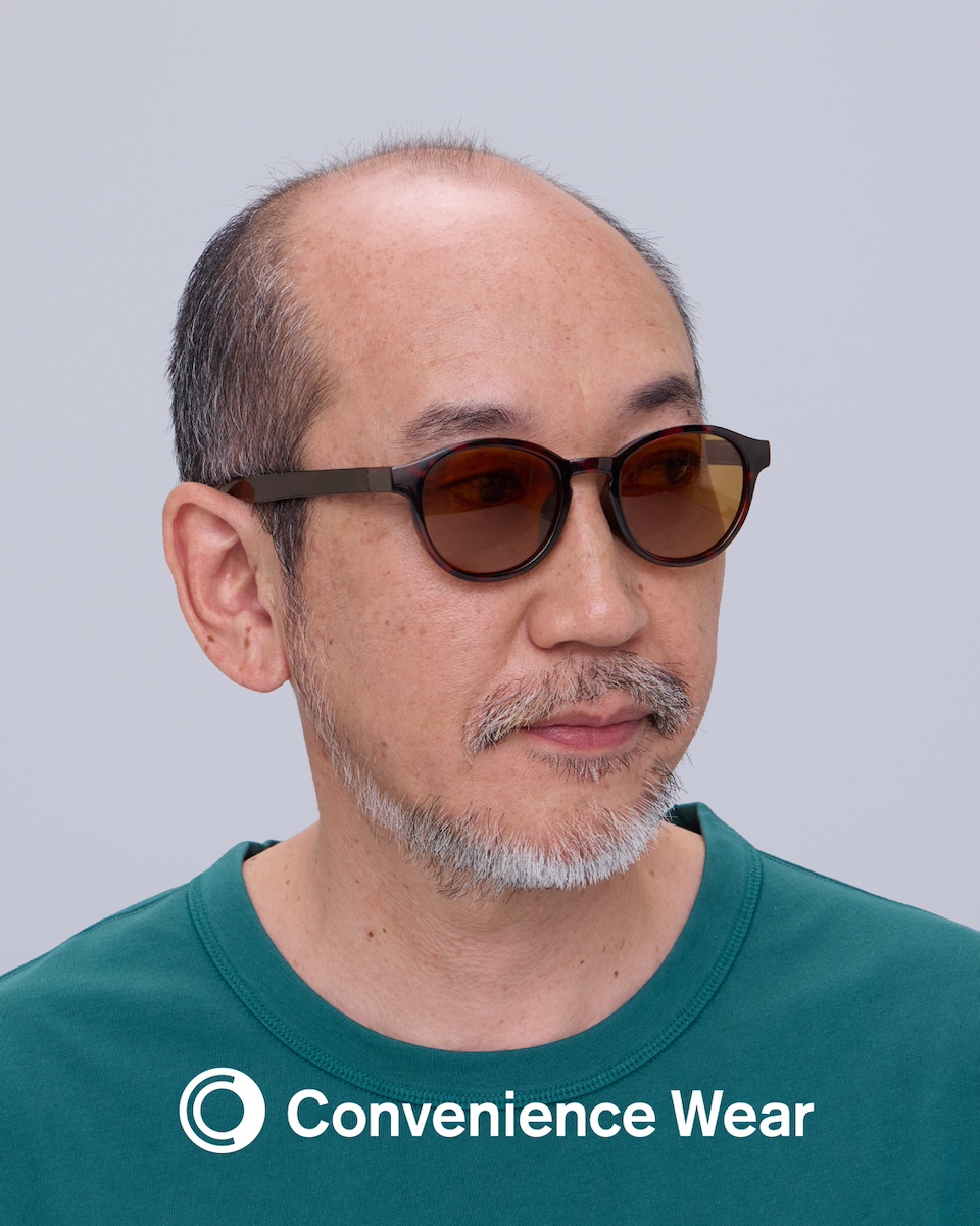 “コンビニサングラス”は、紫外線を99%カットするUVサングラス。販売中の定番のくろに加えて、ブラウンミックス、クリアブラウンが新たにラインアップする。ウェリントンとボストンの中間であるボスリントン型のオリジナルデザインで、テンプル(つる)の先にファミマカラーを配色。バネ丁番によるフィット感にこだわったフレームにはリサイクルプラスチックを、光の乱反射を抑え眩しさを軽減する偏光レンズには植物由来のトリアセテートを採用するなど、環境に配慮したBPAフリー素材を使用している。