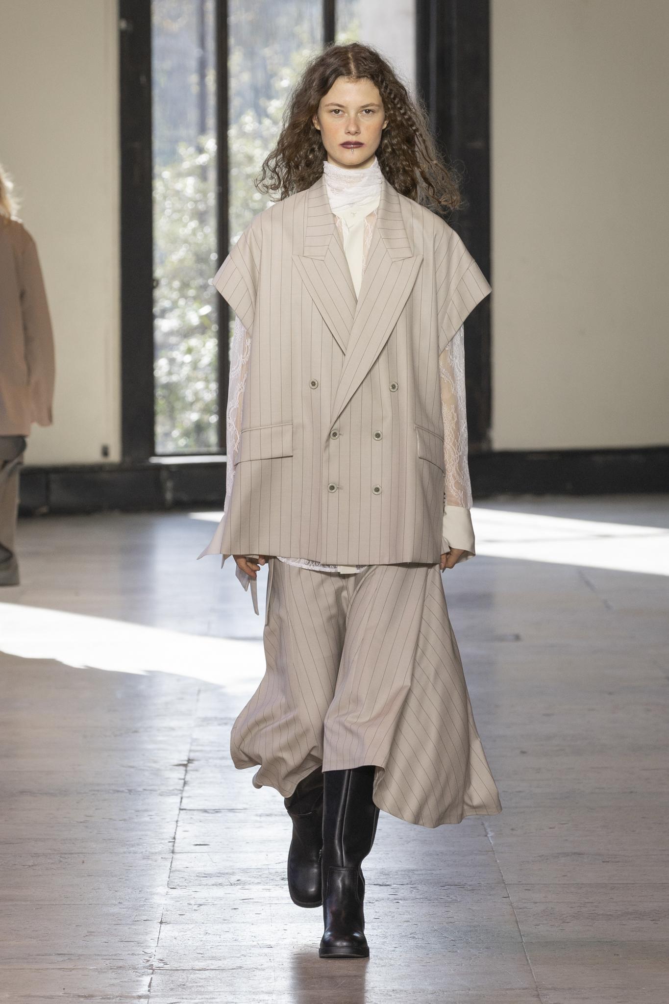 今季のロンドンを象徴するのは、20周年を迎えた「アーデム(ERDEM)」。ビクトリア朝のシルエットやロマンチックな刺しゅうといった「アーデム」のらしさ、または英国的な美的感覚を解体し、現代の文脈へと編み直していく—そんな「アーデム」のアティチュードにロンドンの独立系ブランドが目指すべき成熟の姿を見ることができました。