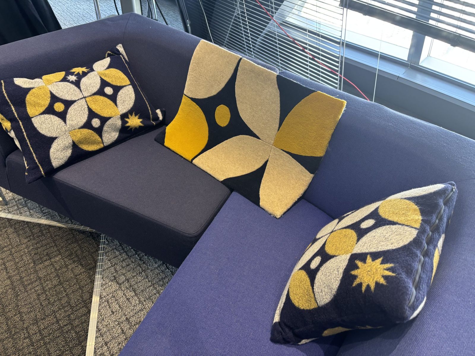 協業したのはメード・イン・山形にこだわり、米沢織の製造・販売を行う「ニトリト(NITORITO)」。手織りにこだわったマットやクッションはとても柔らかく、耐久性も高い。足元のマット、手に抱えたクッションから音を聞くという体験は、スピーカーから音を聴くのとは全く異なる。「ファブリックスピーカー」を採用した商品について、今後キャラクターIPとの協業にも可能性を感じていると話した。