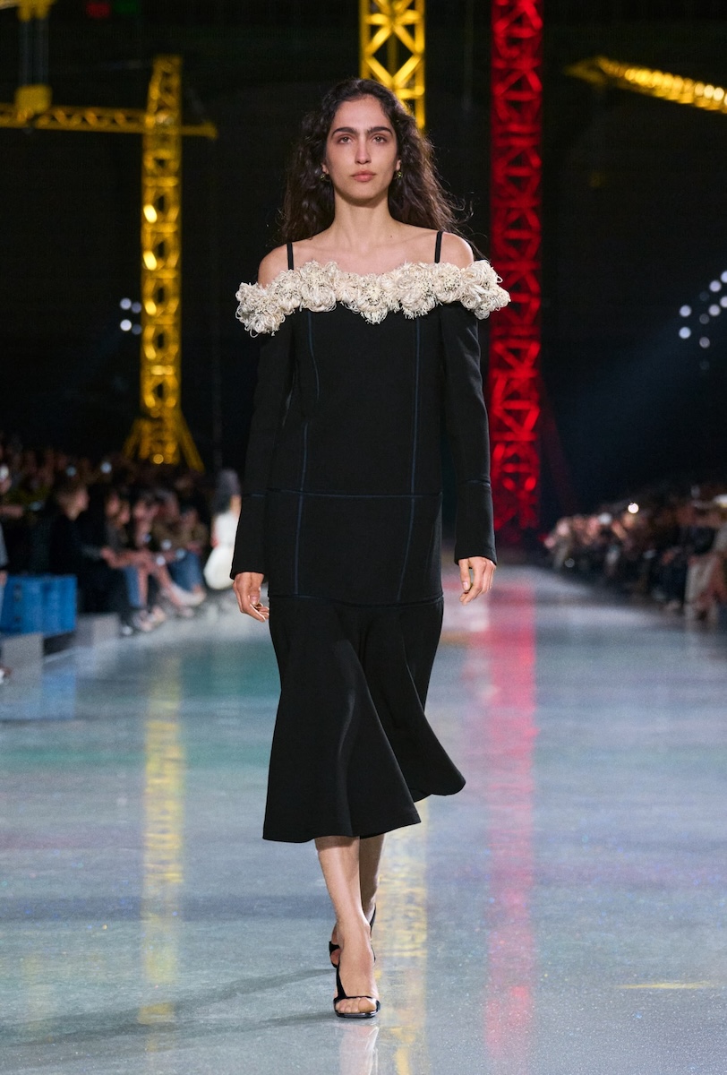今季のロンドンを象徴するのは、20周年を迎えた「アーデム(ERDEM)」。ビクトリア朝のシルエットやロマンチックな刺しゅうといった「アーデム」のらしさ、または英国的な美的感覚を解体し、現代の文脈へと編み直していく—そんな「アーデム」のアティチュードにロンドンの独立系ブランドが目指すべき成熟の姿を見ることができました。