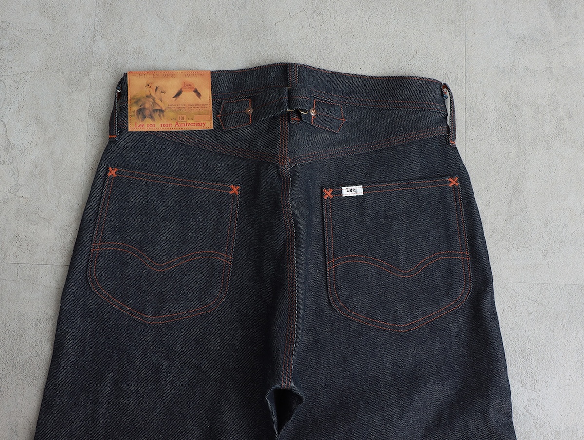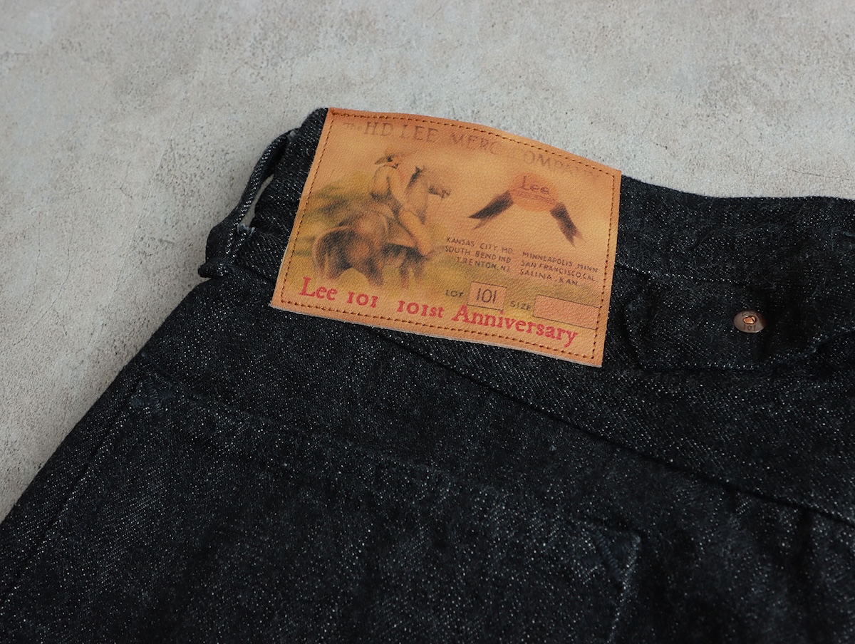 同アイテムは1930年代後半に登場した “リー 101 カウボーイ パンツ”をベースとしたストレートパンツで、象徴的なディティールであるレザーラベルやボタンは当時の仕様を踏襲しながら各パーツには101周年を象徴する“101st”マークをあしらった。