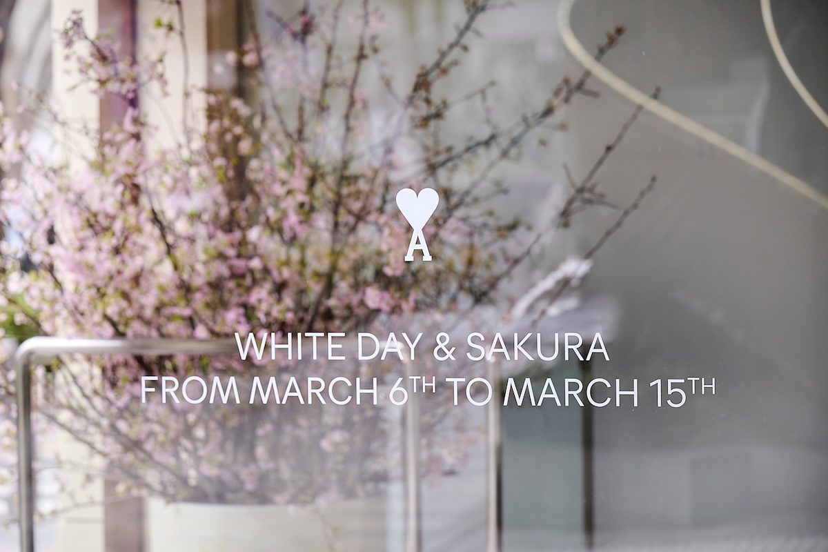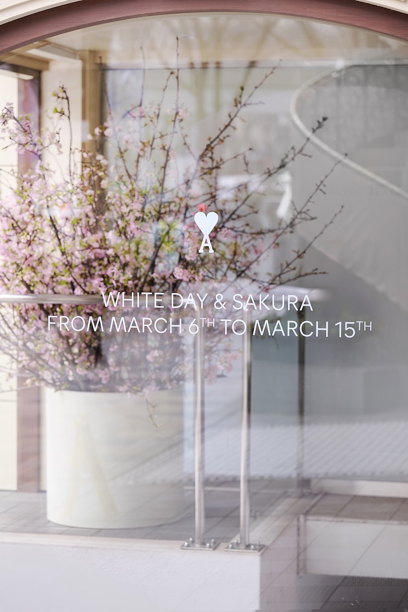 「アミ パリス(AMI PARIS)」は3月15日まで、ホワイトデーと桜のシーズンに合わせ、東京・表参道で長期開催中のポップアップストアおよびカフェ“ル カフェ アミ(LE CAFE AMI)”で、ひと足早く春の訪れを体感できる空間を提供する。