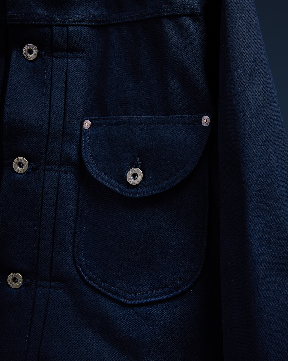 昨年リリースした“101 大戦モデル”のコラボアイテムに続き、今回はさらに時代を遡り、1930年代後半の“カウボーイ”シリーズを「ショット」仕様で再構築した。同アイテムは、30年代後半に見られる白ベース赤青文字の通称“トリコロールタグ”を再現。当時使用のボタン、シンチバックを踏襲し、1937年以降に採用されるヘアオンハイドラベルを使用した。生地には、国産の“13oz 右綾ブラックデニム”を採用し、パッチのへオンハイドもブラック仕様とし、ビンテージの文脈を尊重しながら現代的な統一感をもたせた。