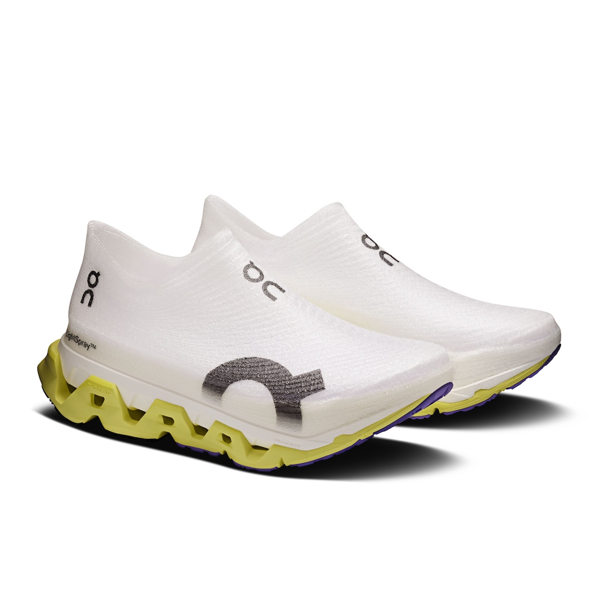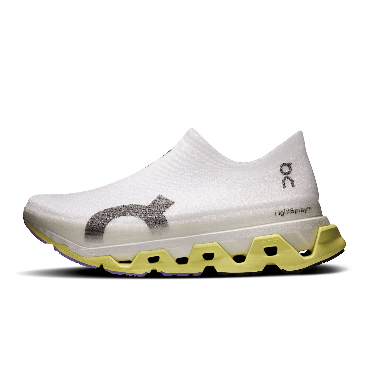 “ライトスプレー クラウドモンスター3 ハイパー”は、超軽量アッパーと“ヘリオン HFハイパーフォーム”を融合することで、“クラウドモンスター 3 ハイパー”をさらに進化させた、長距離ランやテンポ走に最適なモデル。コレクション最高峰のクッション性を持つ“ライトスプレー アッパー”を採用し、快適な履き心地とコレクション最軽量(205g、26.5cm)を実現した。また、わずか8つのパーツで構成されたミニマルな構造により、環境負荷を低減しつつ、高いレベルのトレーニングパフォーマンスを発揮する。