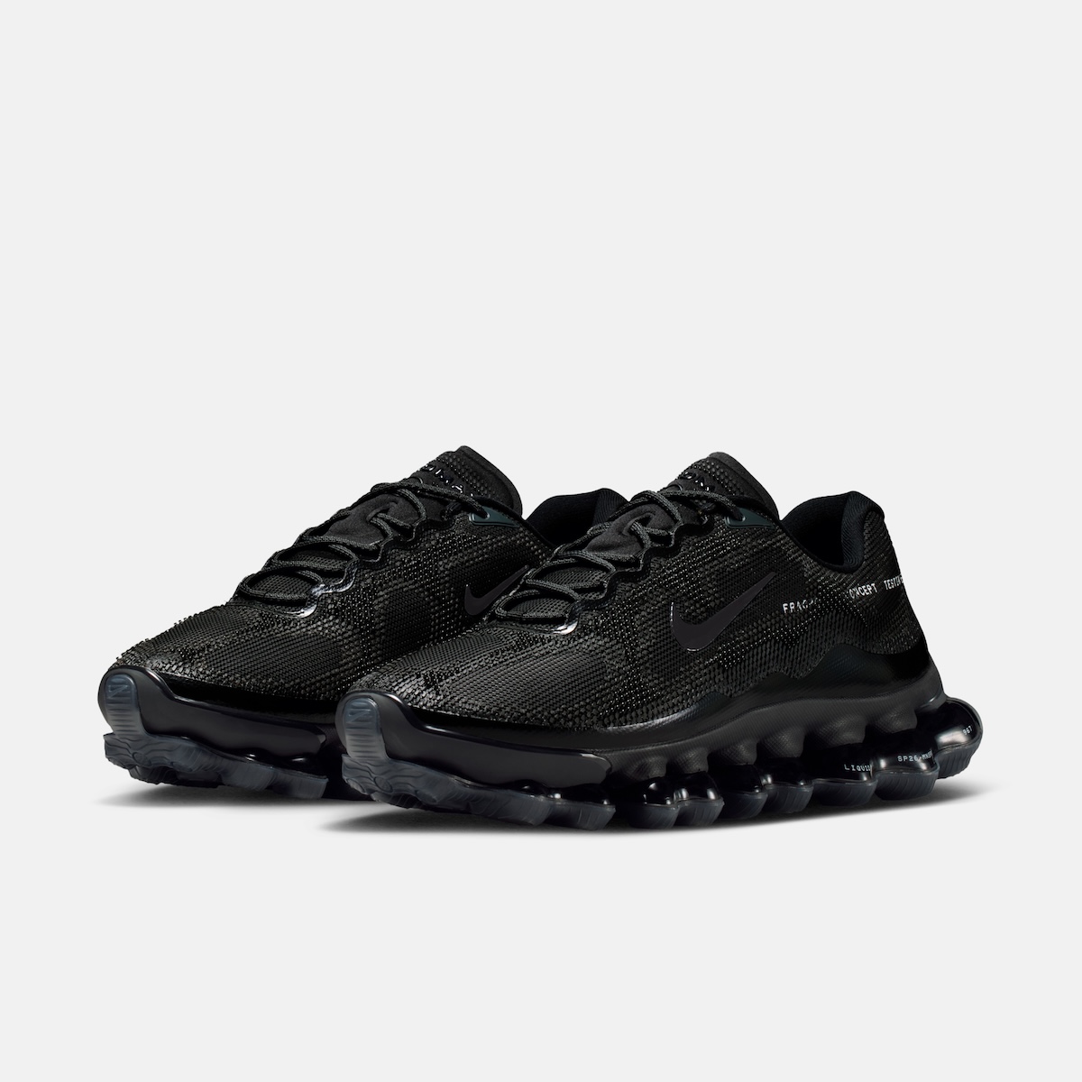 それぞれのモデルは、藤原の視点を通したミニマルなデザイン言語を表現し、「ナイキ」最新のイノベーションに実験的な味わいをもたらす。快適さと“エア マックス”の40年の学びと歴史を融合した“ナイキ × フラグメント コンセプト テスティング エア リキッド マックス”は、大胆な存在感を放つデザインの“ナイキ エア リキッド マックス”に藤原控えめなデザイン変更を加えた。同モデルの限定版を「ナイキ」のコラボレーターと手掛ける初めてのもので、全体をブラックで統一したアッパーの外側側面に“フラグメント コンセプト テスティング”のブランディングを添えた。