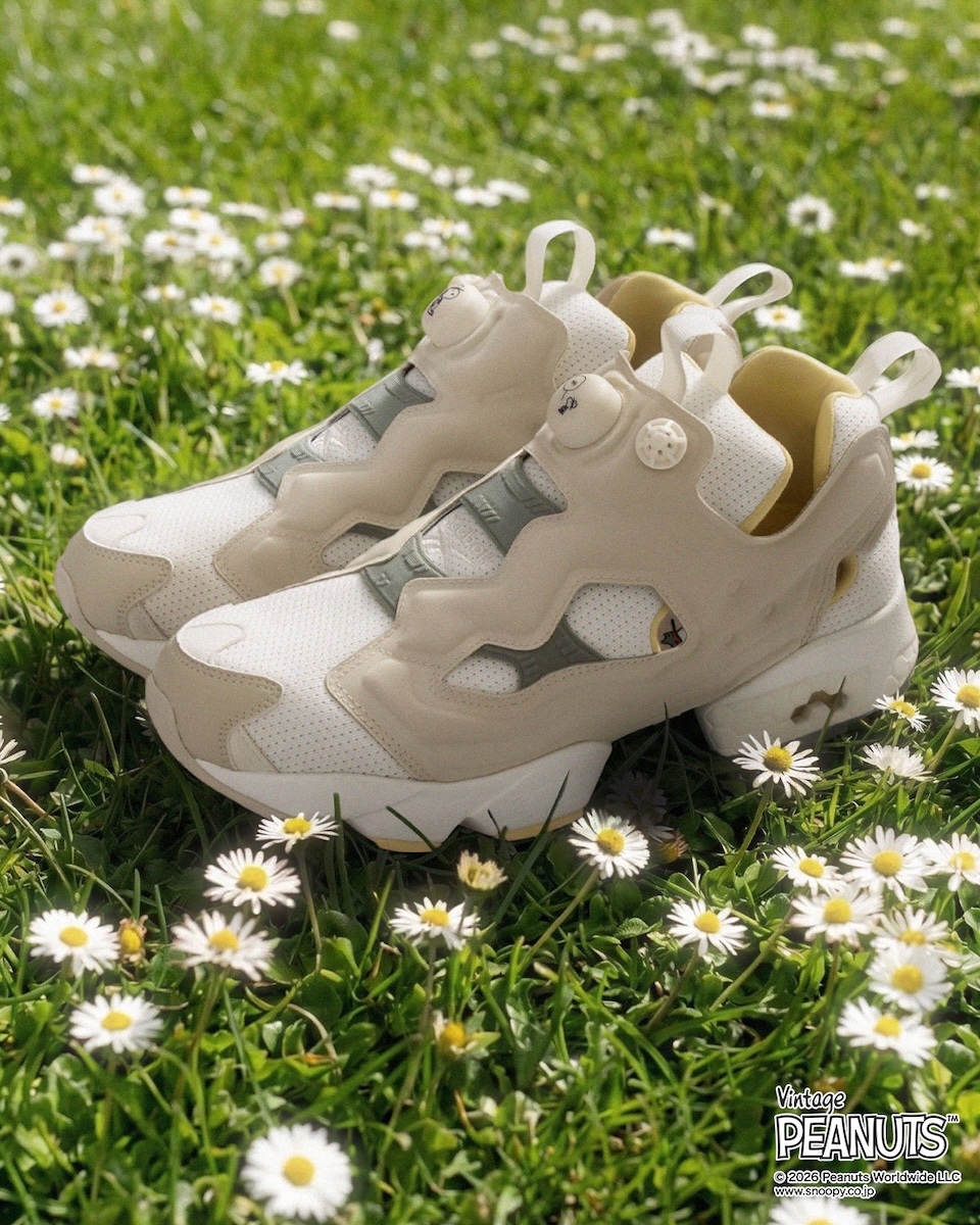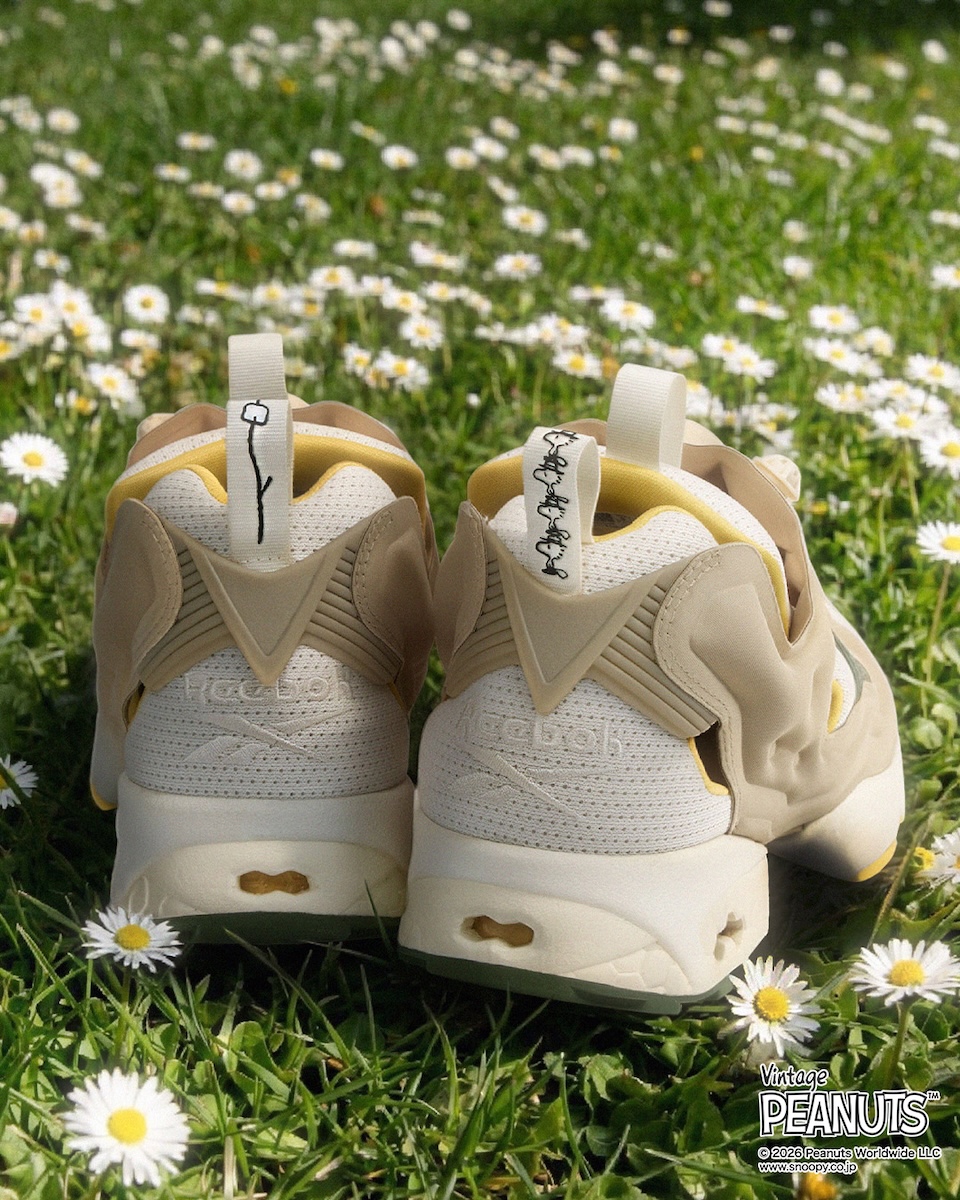 “インスタ ポンプフューリー 94 ピーナッツ”(2万4200円)は、スヌーピーが率いるビーグルスカウトの世界を表現した。クリーミーなアイボリーをベースに、ビーグルスカウトたちの帽子をイメージしたカーキ、そして鳥の仲間たちを象徴する鮮やかなイエローを効かせた。サイズ展開は、23.0〜28.5cm。
