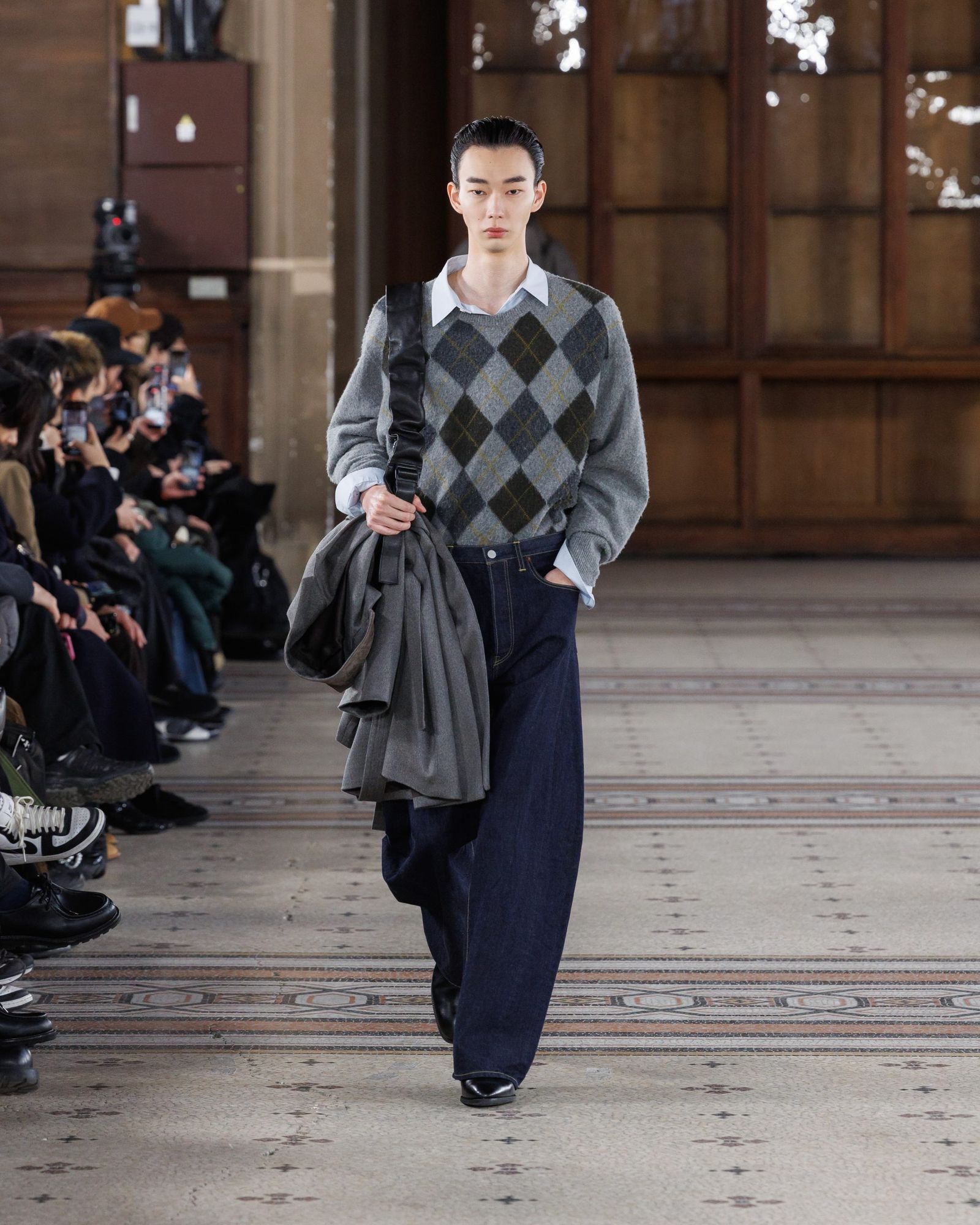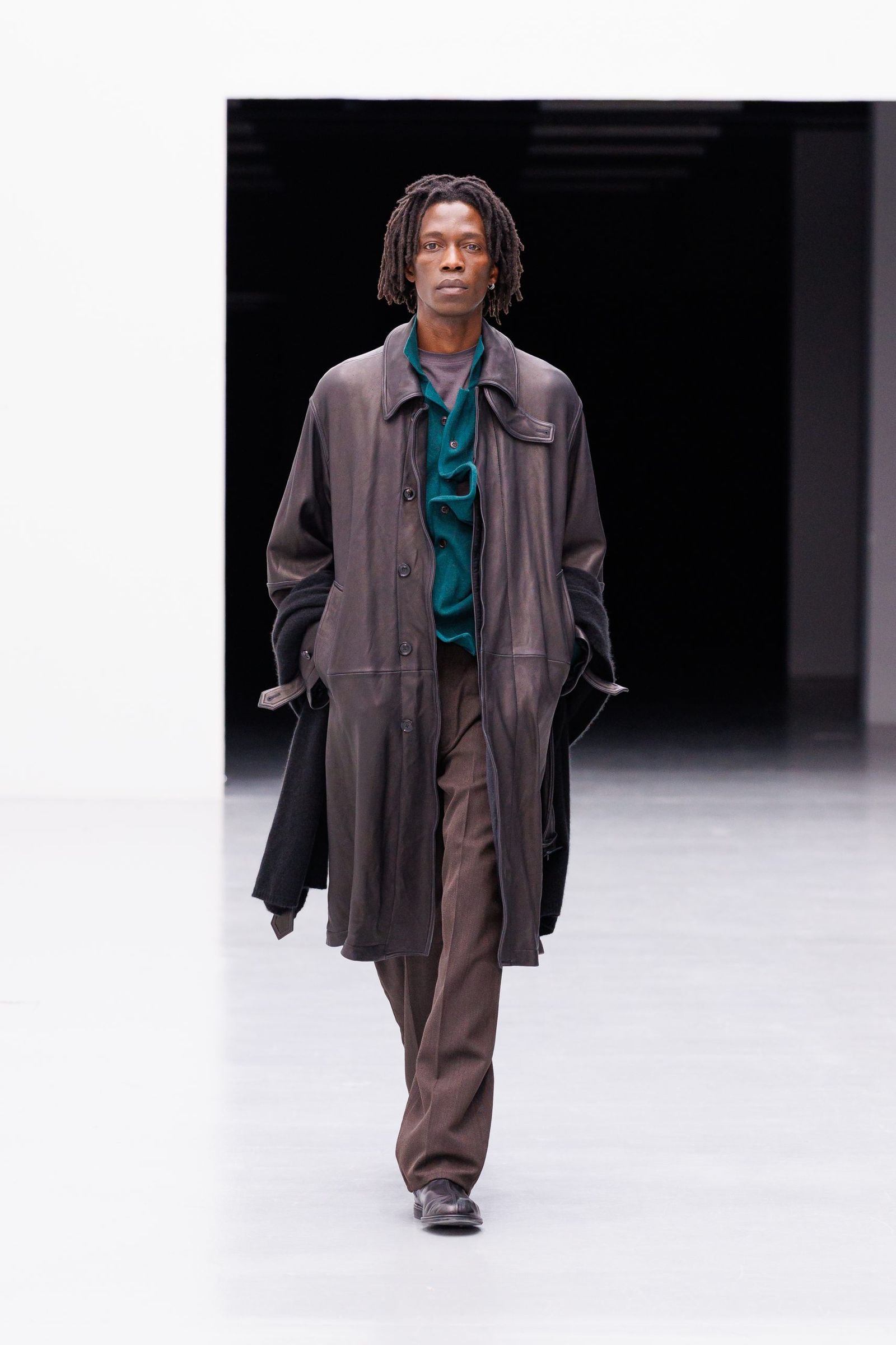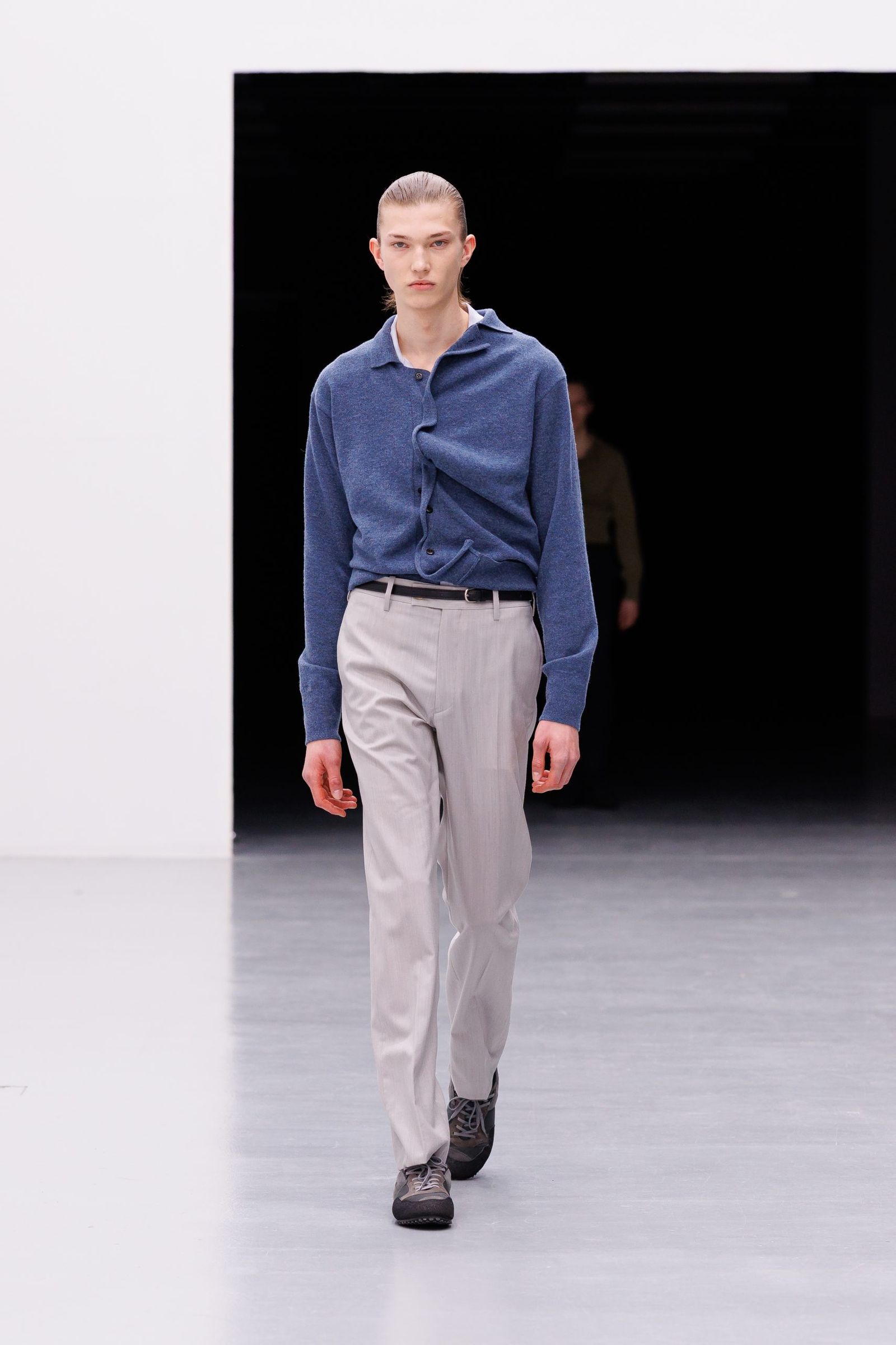 浅川喜一朗がクリエイティブ・ディレクターを務める「シュタイン」は、16年にスタート。パリメンズで3回目のランウエイとなった26-27年秋冬は、公式スケジュールに名を連ねた。浅川が身耽ってきた海外の写真集などを着想源に、静寂や建築的な冷たさ、モノクロームな美しさを感じさせる服を作ってきた。今シーズンは、そのクリエイションに人間的な温かみが宿った。