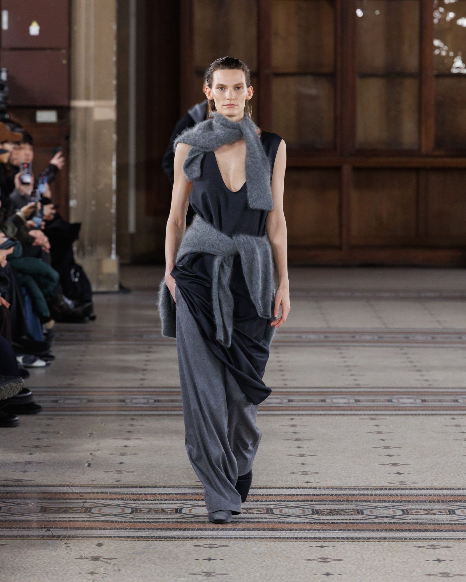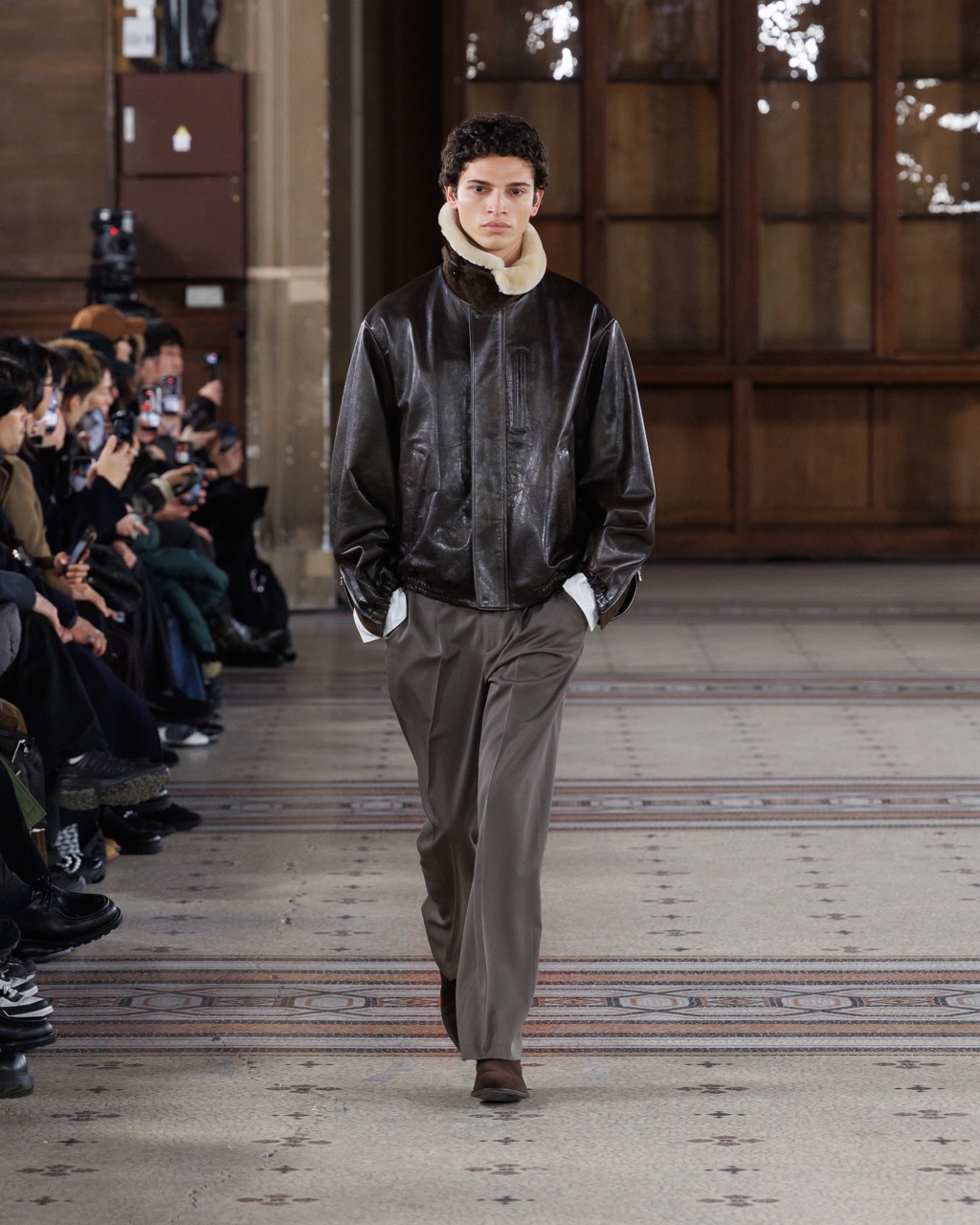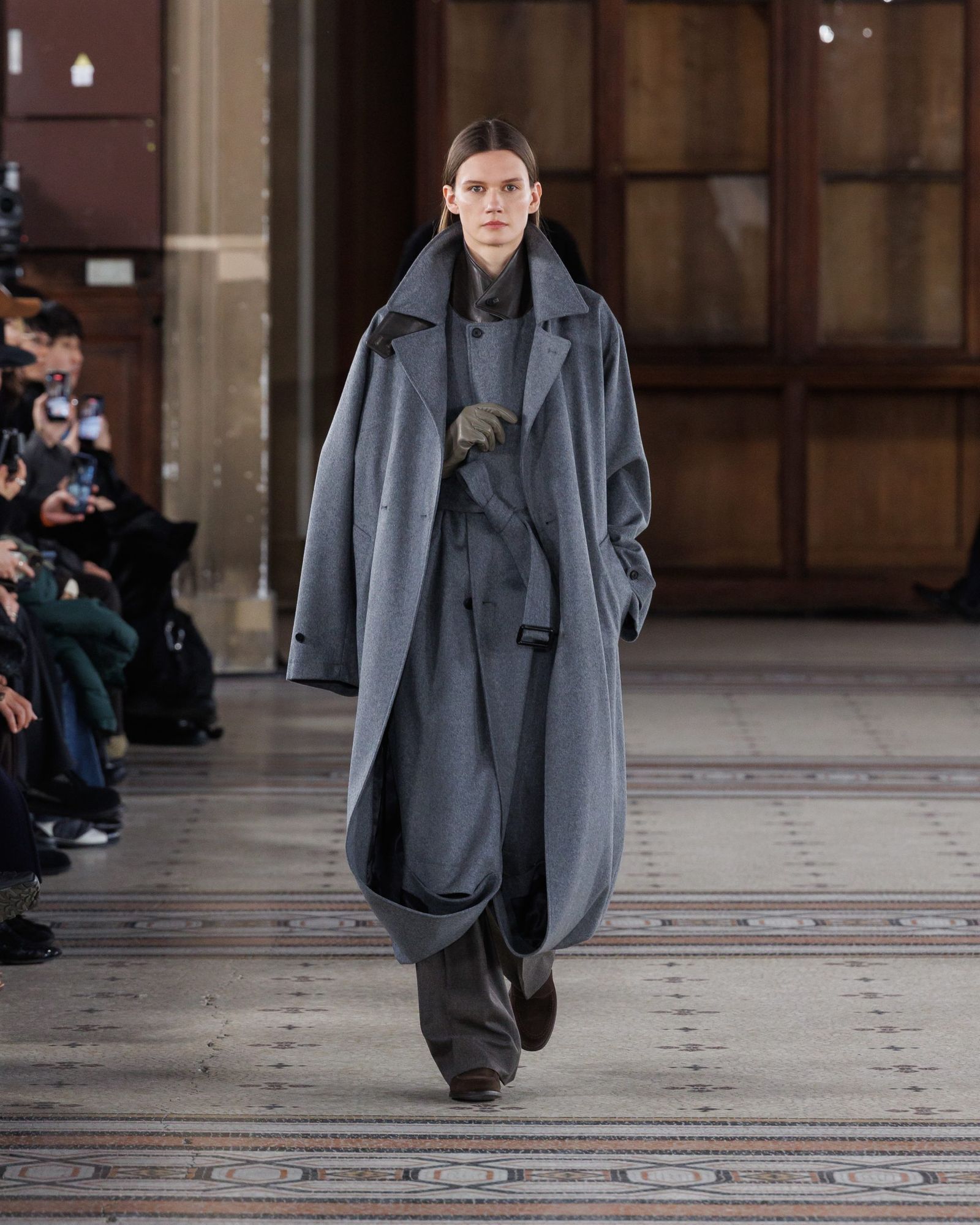 浅川喜一朗がクリエイティブ・ディレクターを務める「シュタイン」は、16年にスタート。パリメンズで3回目のランウエイとなった26-27年秋冬は、公式スケジュールに名を連ねた。浅川が身耽ってきた海外の写真集などを着想源に、静寂や建築的な冷たさ、モノクロームな美しさを感じさせる服を作ってきた。今シーズンは、そのクリエイションに人間的な温かみが宿った。
