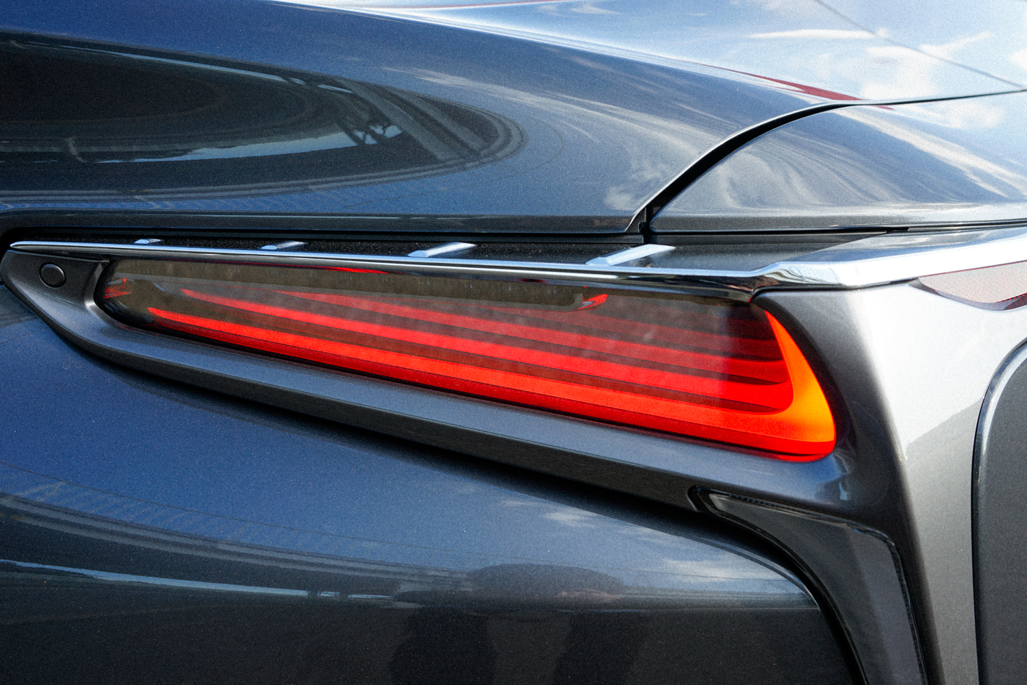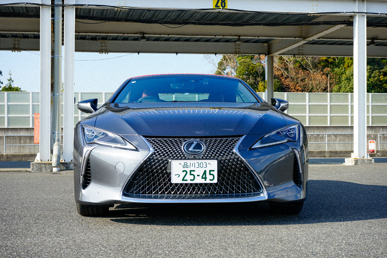 12年の北米国際自動車ショーで初公開したコンセプトカー“LF-LC”をベースにしたエクステリアは、同コンセプトモデルのイメージをほとんどそのままに市販化された稀有なデザインで、発売以来、刷新は1度も行われなかった。全長4770mm、全幅1920mmの堂々としたサイズに2+2レイアウトを贅沢に収め、ワイド&ロー、ロングノーズ・ショートデッキの伝統的なクーペスタイルを踏襲。目尻を吊り上げたヘッドライトから涙のように伸びる造形や、合わせ鏡の原理を利用したテールライトなどの細部の意匠が、発売から9年たった今でも新鮮に映る。フロントに大きく空いた“スピンドルグリル”も一世代前のデザインアイデンティティーだが古さを感じさせず、顔つきに威風堂々としたムードを加えている。