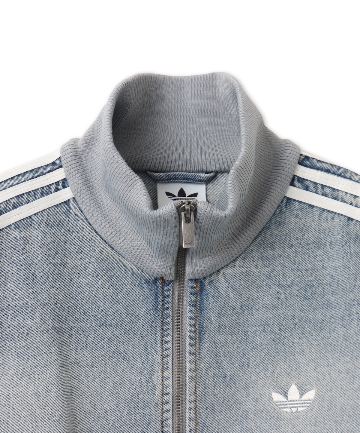 本アイテムは、長年ストリートシーンで愛されてきたトラックスーツ“ファイアーバード”をライトブルーのデニム素材でアップデートした。デニム生地にはウオッシュ加工を施したほか、さりげなく格子状の質感を浮かび上がらせ、ビンテージライクな雰囲気を演出。クラシックなスポーツウエアのフォームはそのままにすることで、ストリートらしい無骨さを加えた。ジャケットには、スタンドカラー、トレフォイルロゴ、スリーストライプスといった象徴的なディテールを踏襲。開け方によってシルエットやレイヤードの表情を自在にアレンジできるダブルジップ仕様とした。パンツは、ヒップから裾に配したスリーストライプスが印象的なトラックパンツをベースに、裾にスピンドルを備えることでシルエットの調整を実現。両アイテム共に、トレンド感のあるバギーフィットに仕上げ、ユニセックスのサイズレンジで展開する。