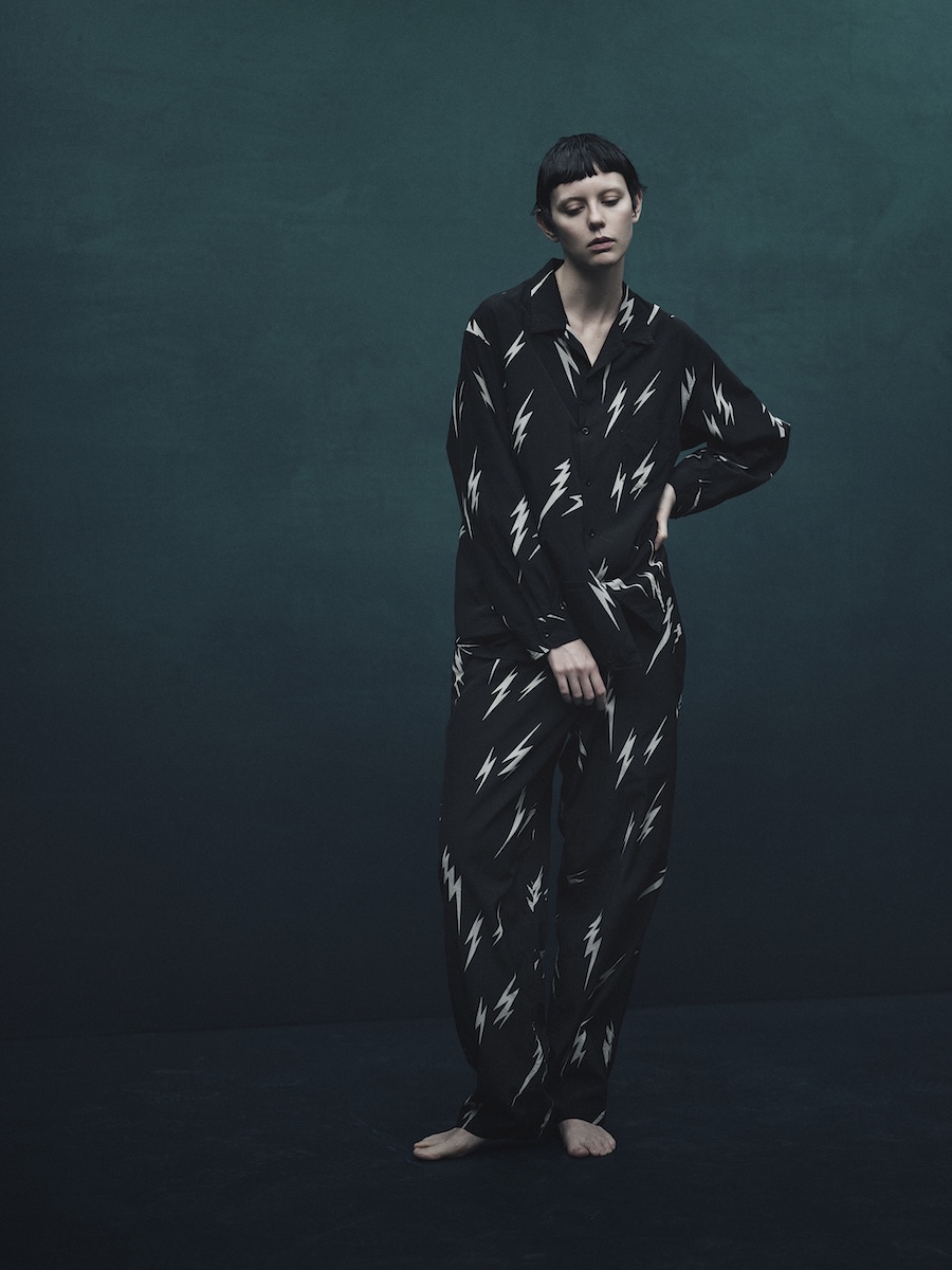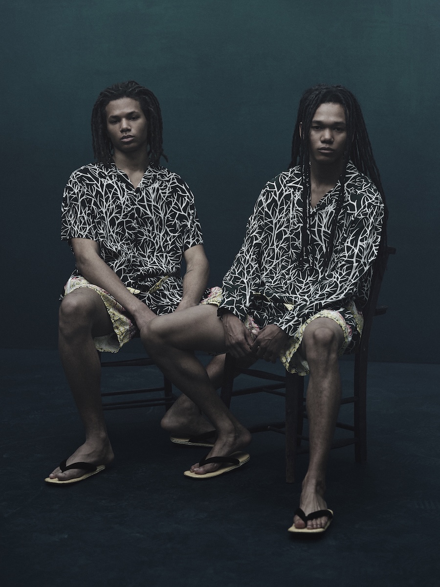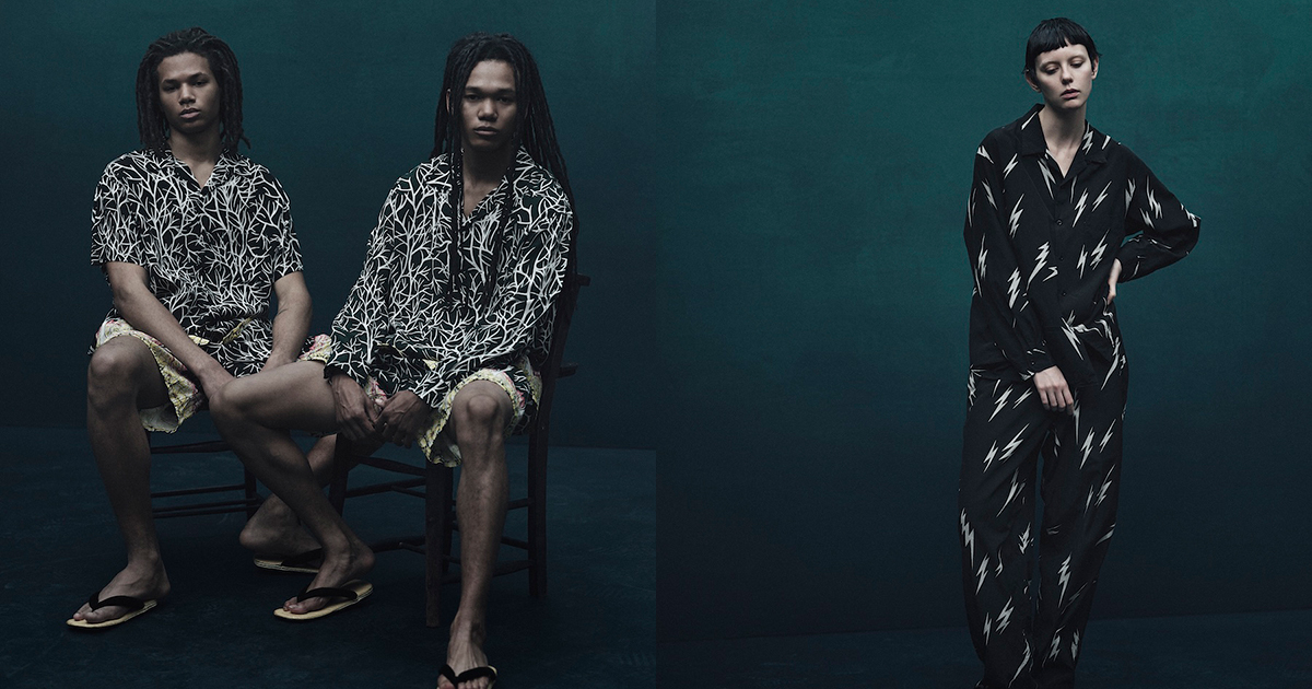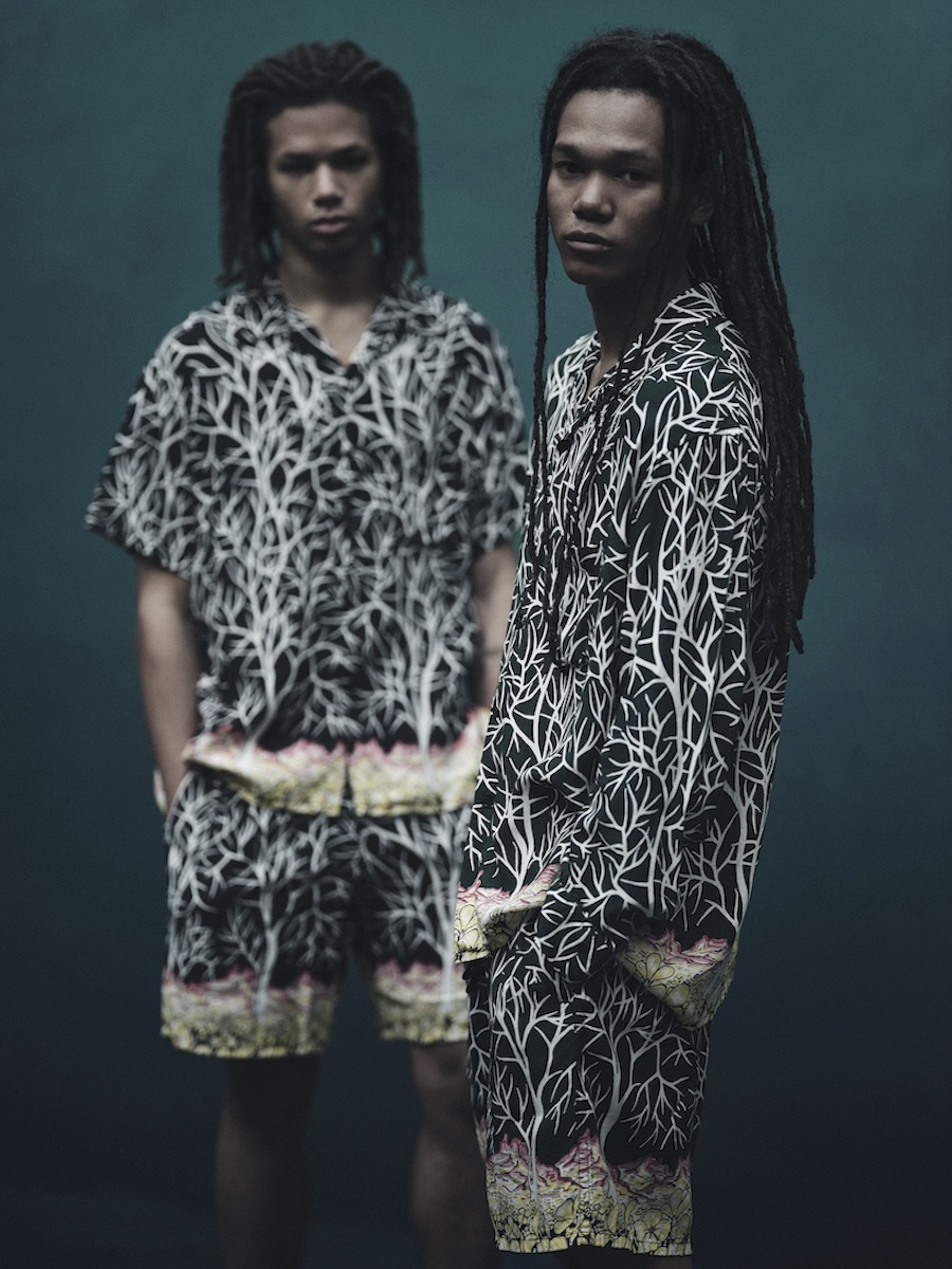 同ポップアップでは、今シーズン展開しているアイテムに加え、夏に向けた新作まで幅広くラインアップする。ビンテージのニュアンスを思わせる落ち感のあるレーヨン素材に火山や枯れ木を想起させるテキスタイルをプリントしたハワイアンシャツとショーツを展開する。また、ドビー織りの質感を表現したストライプ生地を用いた稲妻柄シリーズもそろえる。さらに特別商材として、アトリエから生み出されるイメージを一点一点に凝縮したコレクションのプロトタイプ“ピエス ユニック(PIECE UNIQUE)”も用意する。同イベントでは13アイテムをラインアップする。