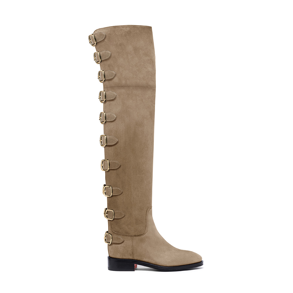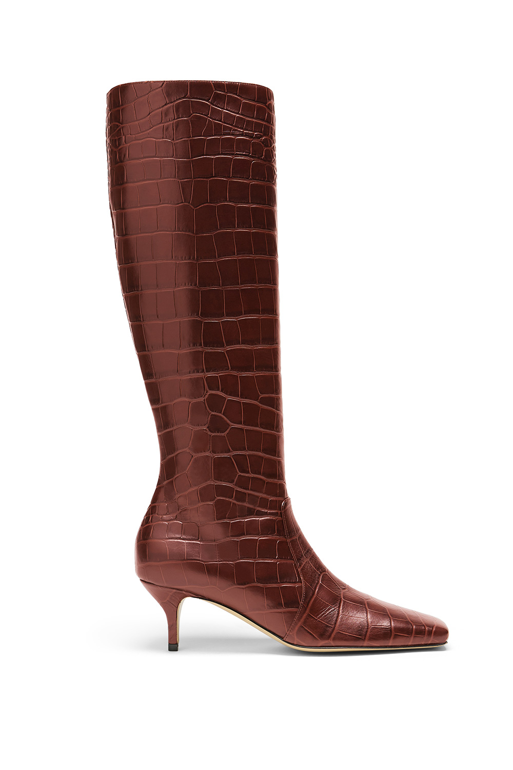 創立30周年の節目となる今年、ブランドの若々しく自信に満ちた女性像をあらためて発信するために焦点を当てたのはブーツ。スタックヒールのウエスタンブーツのようなタフな一足から、直線的でモードな面構えのロングブーツ、ソフトレザーで仕上げた8.5cmのチャンキーヒールのニーハイブーツまで、さまざまなシーンに寄り添うラインアップをそろえた。定番のバイカーブーツもベルベットスエードで刷新した。
