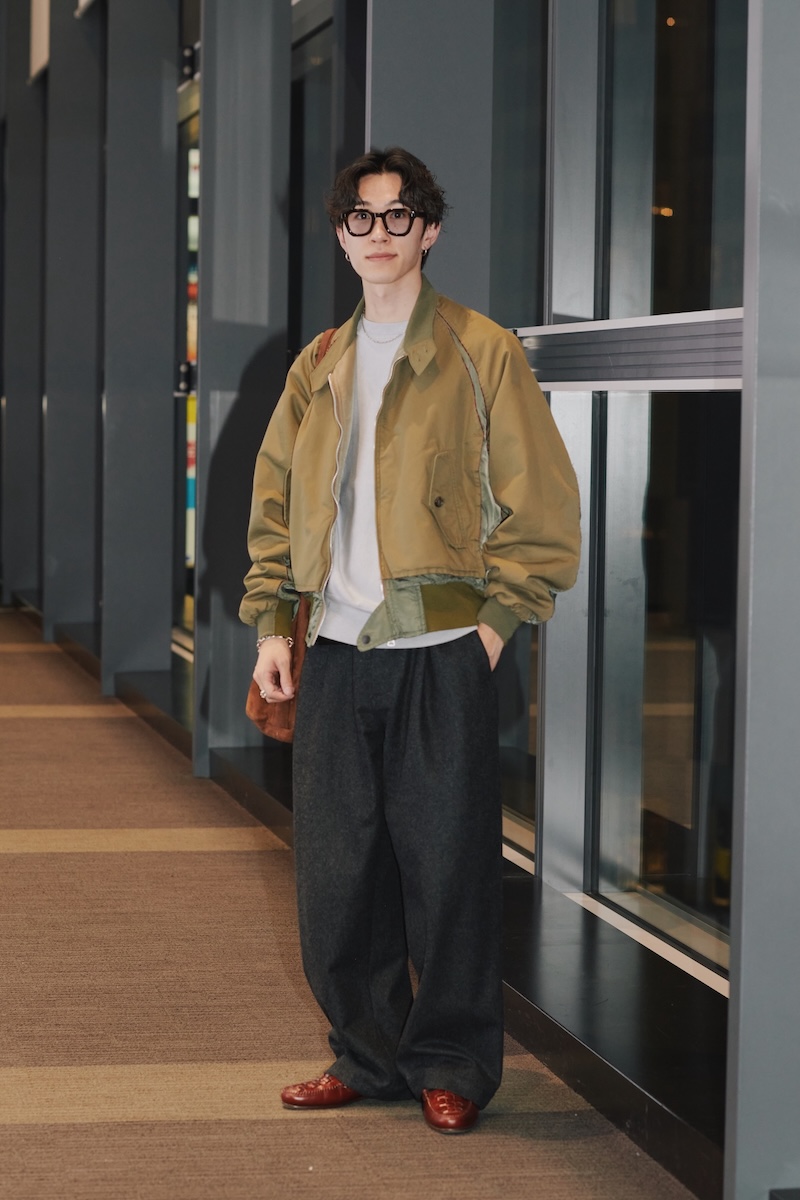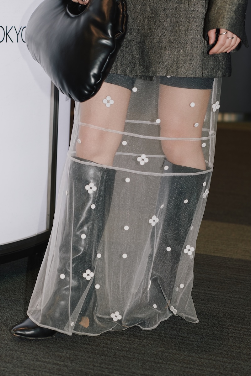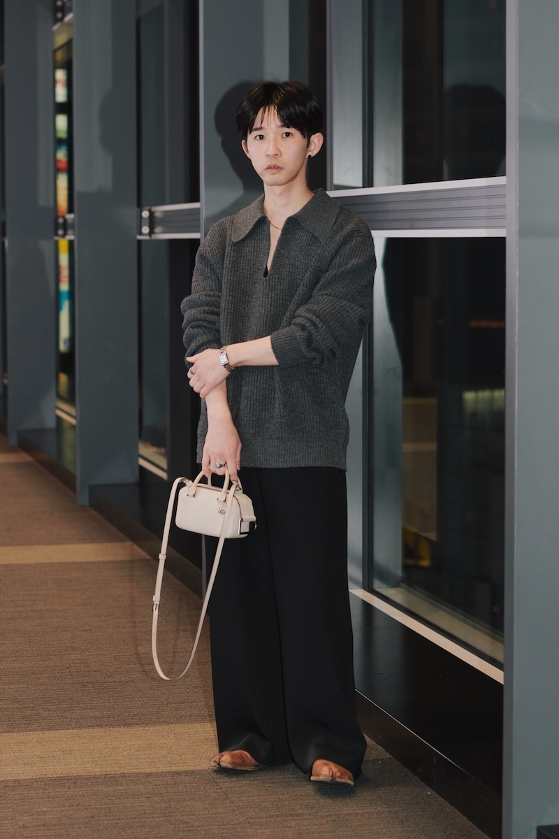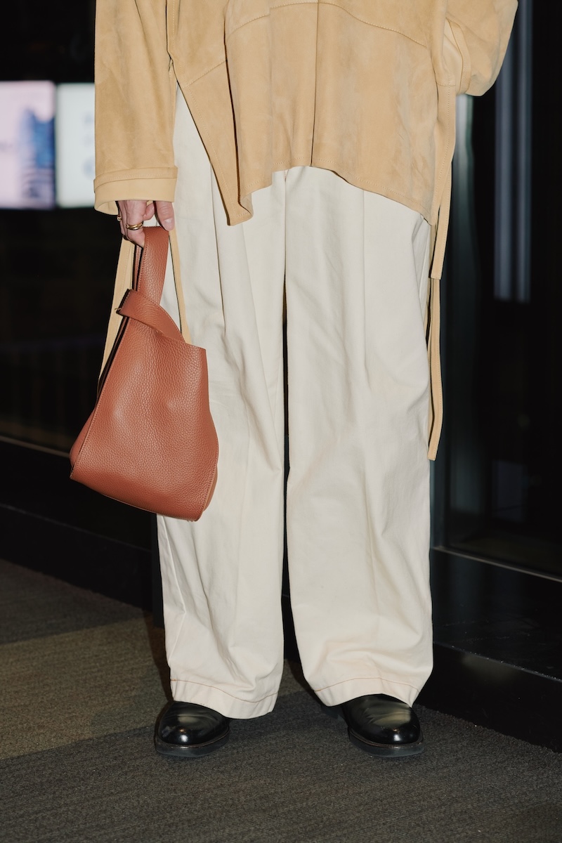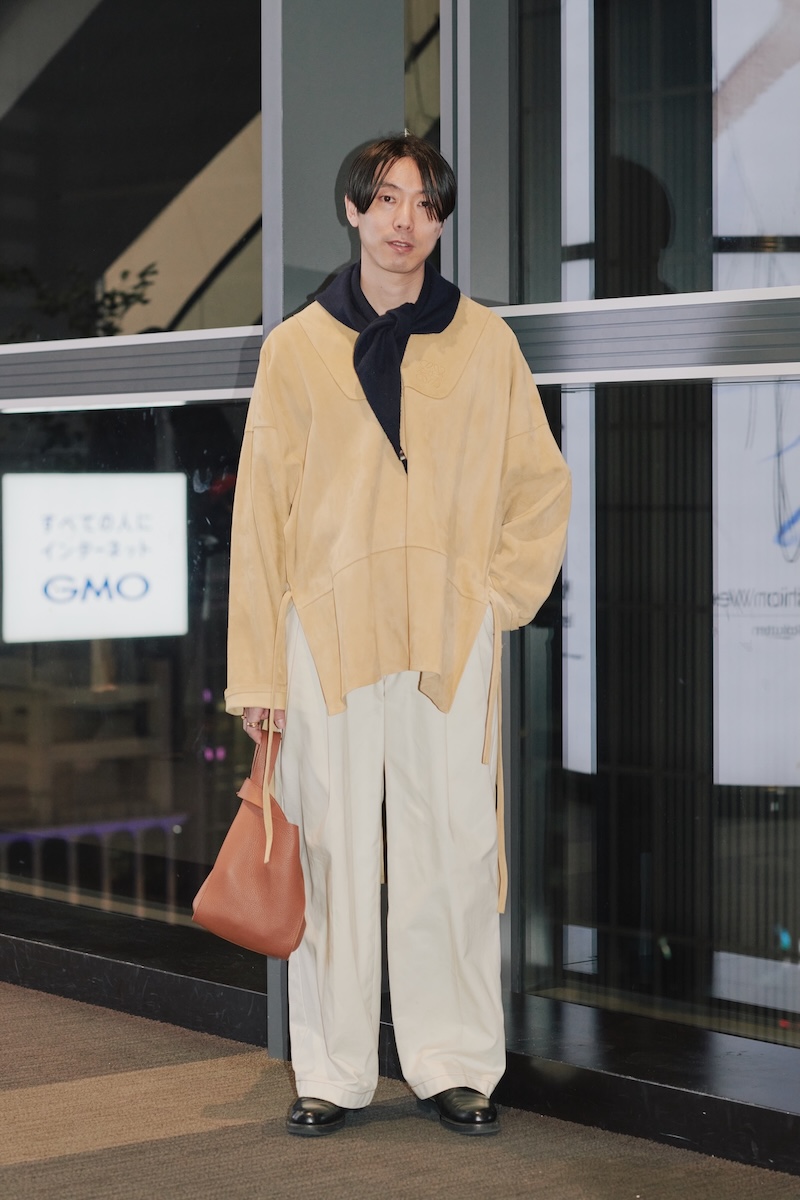 来場者のスタイルは、ジャケットやシャツ、スラックス、レザーシューズといったフォーマルなアイテムを主軸に据えた着こなしが目立った。一方で、デニムやパーカ、キャップ、肩がけのニットなどを合わせることで、ストイックになりすぎない抜け感を演出。「ヨーク」のアイテムを愛用する人も多く、ブランドのアイデンティティーを象徴する、日常に寄り添う緩やかなシルエットが知的でリラックスしたムードを形成した。