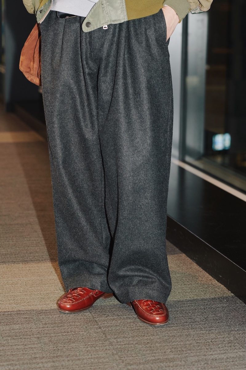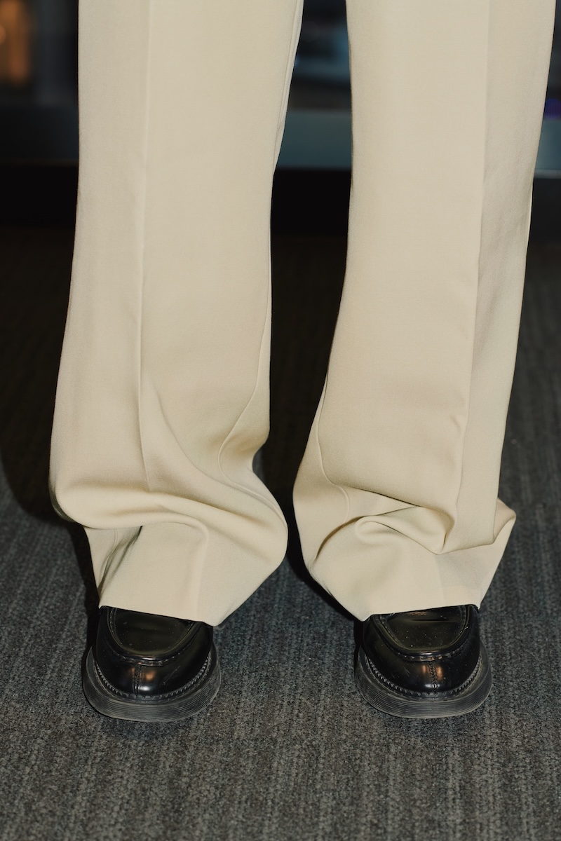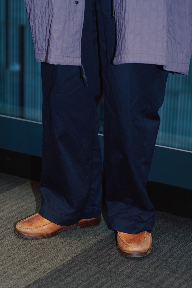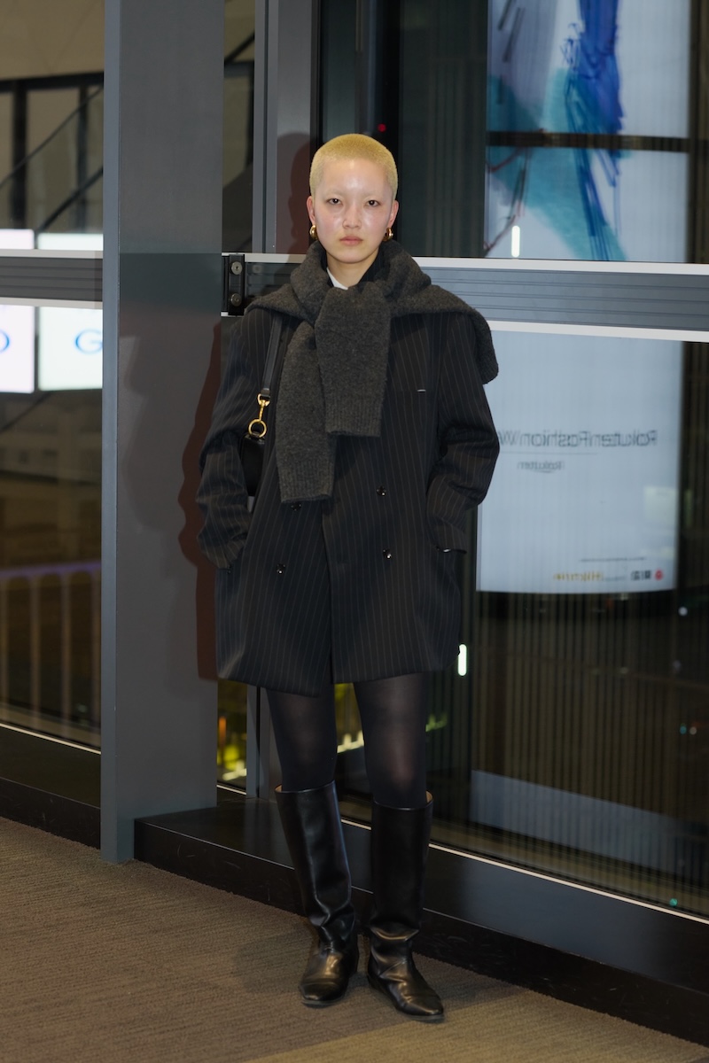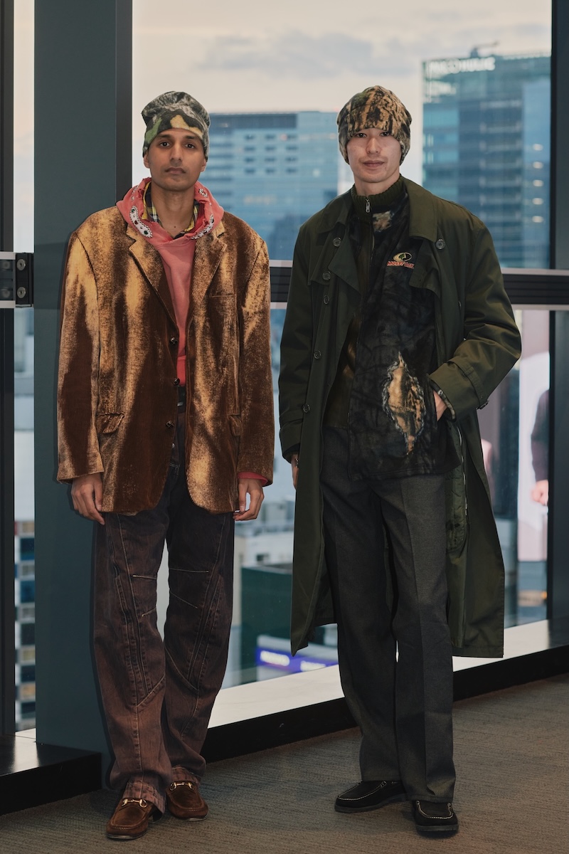 来場者のスタイルは、ジャケットやシャツ、スラックス、レザーシューズといったフォーマルなアイテムを主軸に据えた着こなしが目立った。一方で、デニムやパーカ、キャップ、肩がけのニットなどを合わせることで、ストイックになりすぎない抜け感を演出。「ヨーク」のアイテムを愛用する人も多く、ブランドのアイデンティティーを象徴する、日常に寄り添う緩やかなシルエットが知的でリラックスしたムードを形成した。
