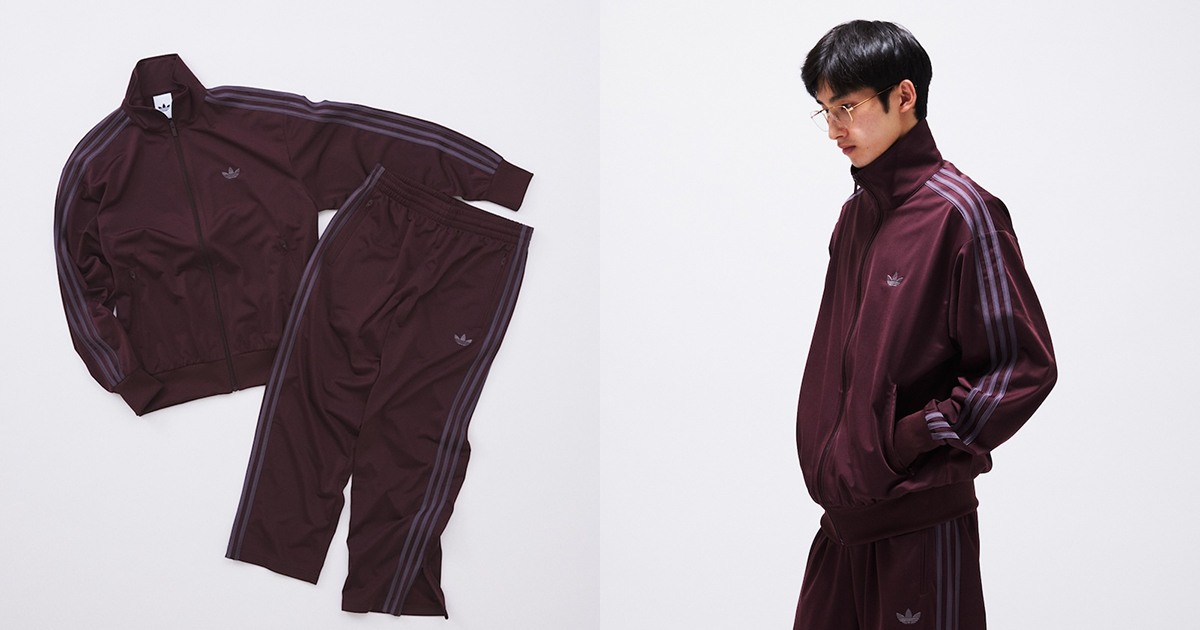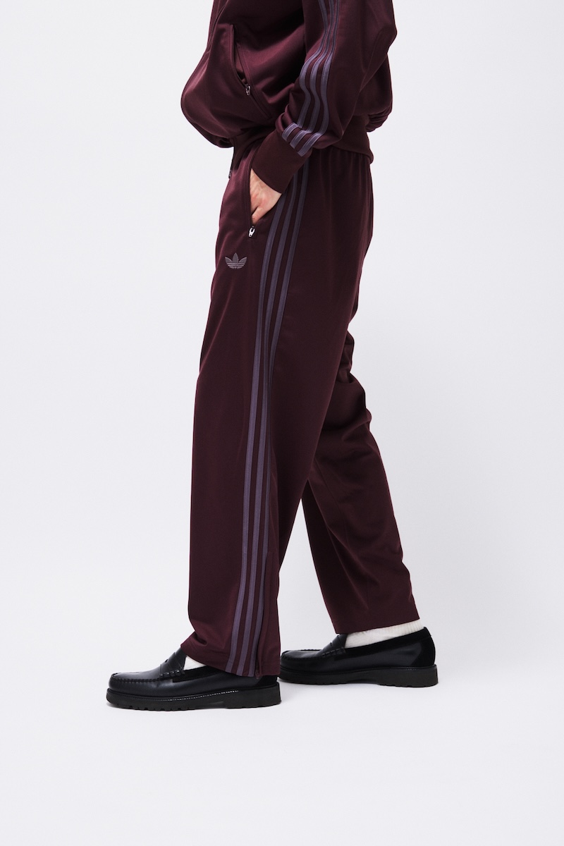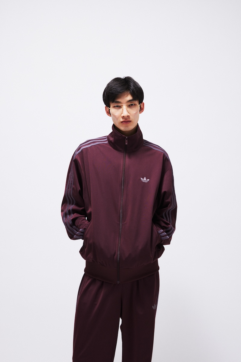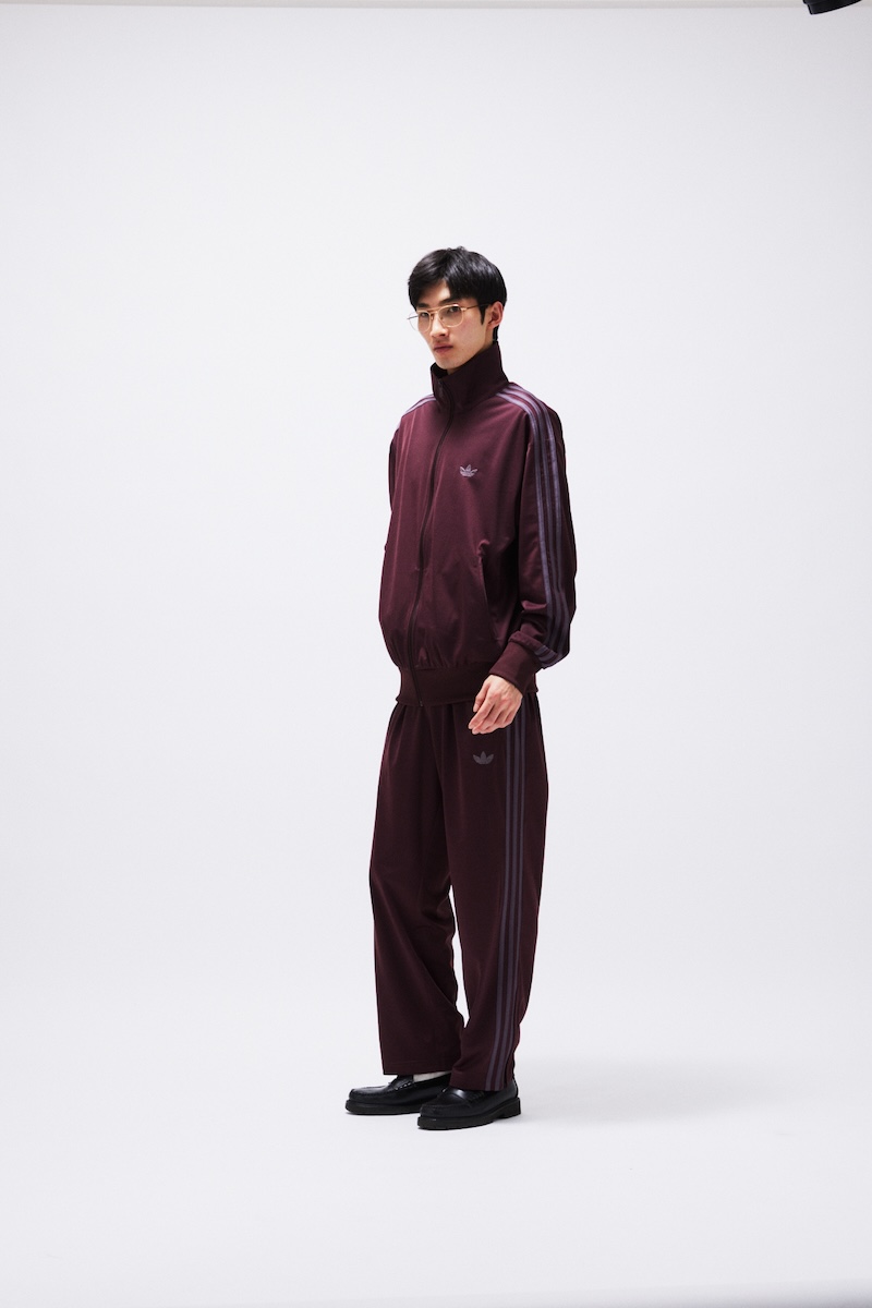 本アイテムは、ベースカラーに深みのあるバーガンディーを、スリーストライプにはグレーを採用しスポーティーでありながらシックな印象に仕上げる。同シーズンに展開するシューズ別注モデル“TOKYO(トーキョー)”と連動したカラーリングで統一感を演出した。ジャージの程よい光沢感と“ファイヤーバード”のアイコニックなシルエットはスポーツウエアの空気感とスタイリッシュさを両立する。セットアップだけでなく単体でも取り入れられるデザインだ。