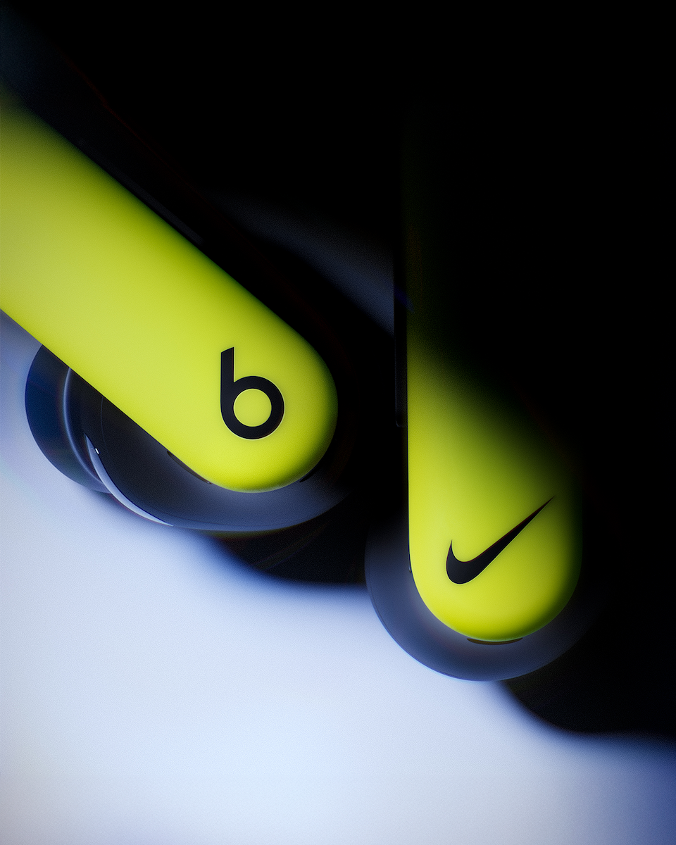 同アイテムは、「ビーツ」史上初めて製品のロゴスペースをパートナーに開放。右側のイヤーバッドには「ナイキ」のスウォッシュロゴ、左側には「ビーツ」の“b”ロゴを配置し、両ブランドのアイコンが一つのプロダクトに刻まれた、歴史的なデザインが実現した。