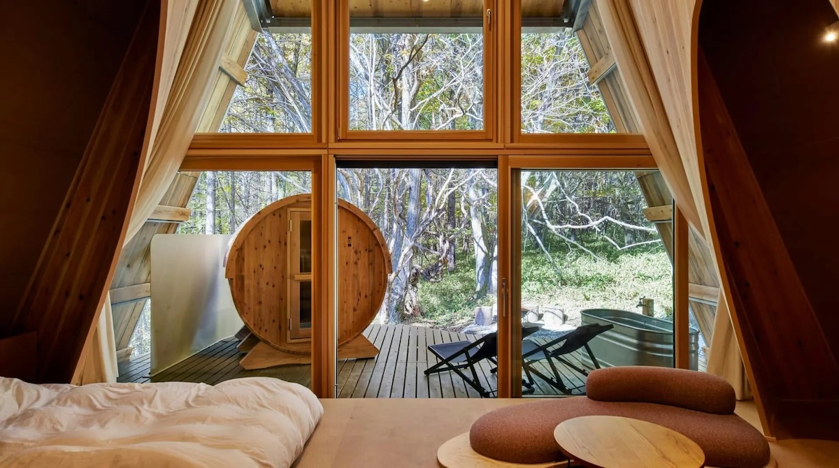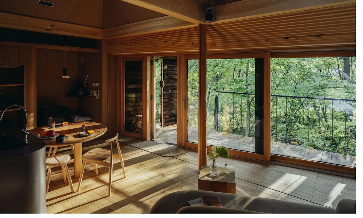 例えば、最初にSANU 2nd Homeが建てた「モス(MOSS)」と「ビー(BEE)」はそれぞれデザインが異なる設計。リビングとバルコニーが一体となった「MOSS」は暮らしと自然がシームレスにつながる。苔むす森に生きる動植物に負担をかけない、地球を愛するキャビンだ。「BEE」はその名のごとく、ハチの巣に着想を得た、自然の風景を切り取る大きな窓が特徴的。国産木材を100%使用し、土壌環境に配慮した高床式の基礎だ。 いずれも林業や森づくりといった材木の循環まで視野に含め、サステナブルな建築を推進するADXの安齋好太郎が設計した。