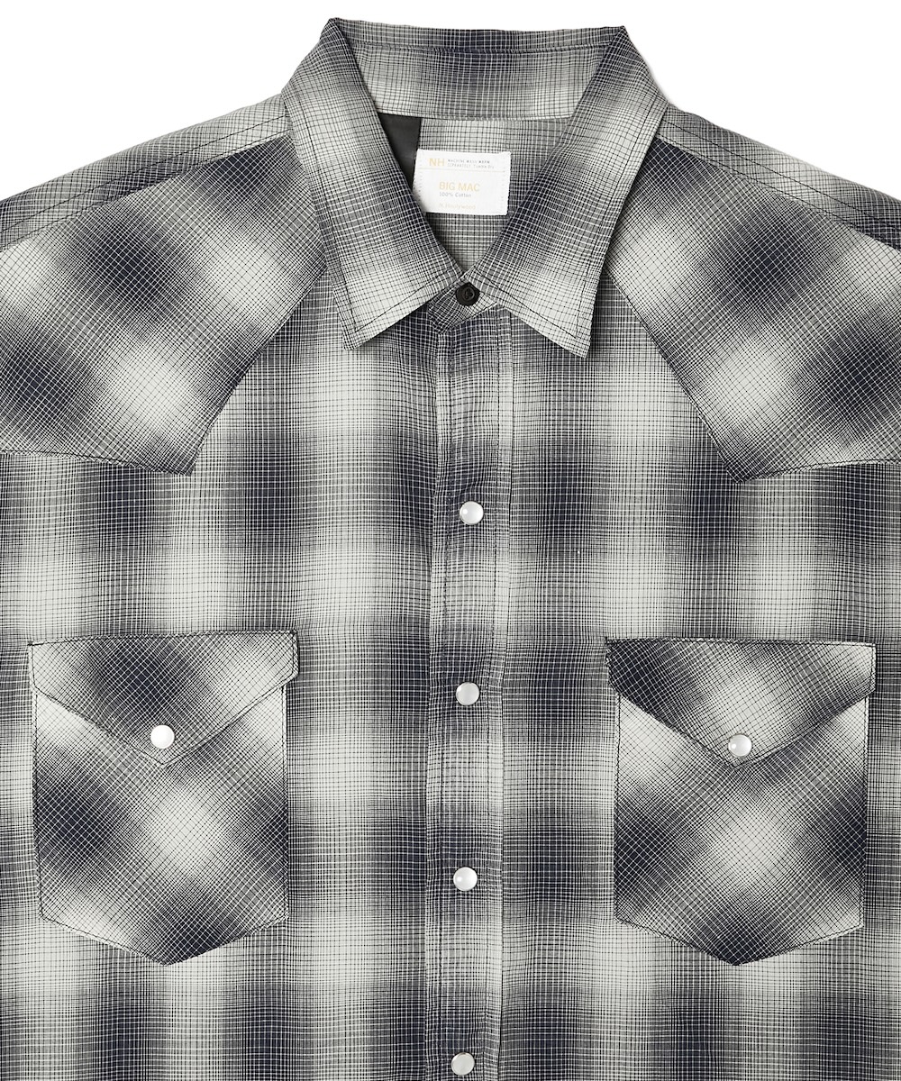 ウエスタンシャツは身幅を広げたボックスシルエットにアレンジし、極細の糸とボイルチェック生地が程よい透け感を演出する。ワイドなテーパードシルエットのデニムパンツは「ビッグマック」のフロントボタンを復刻し、3 本針使用で70年代当時のデティールを、ブラストブリーチウォッシュ加工でビンテージ感を再現した。また、シャンブレー素材のハーフスリーブシャツは、洗濯・着用を重ねることで味が増すように仕上げた。3型とも“N.ハリウッド コンパイル”のアイコニックなブラックのブランドネームを配置する。
