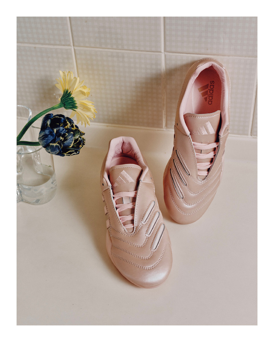 “テコンドー メイ エリート W”は、1980年代にテコンドー競技をサポートする目的で開発された“テコンドー”をベースに、ウィメンズ向けのタウンユース用に再解釈したモデルだ。細身のシルエットとアシンメトリーなシューレース、そしてアッパーからアウトソールに巻きつくようにデザインされたスリーストライプスが特徴で、トゥには飾りステッチも配されている。