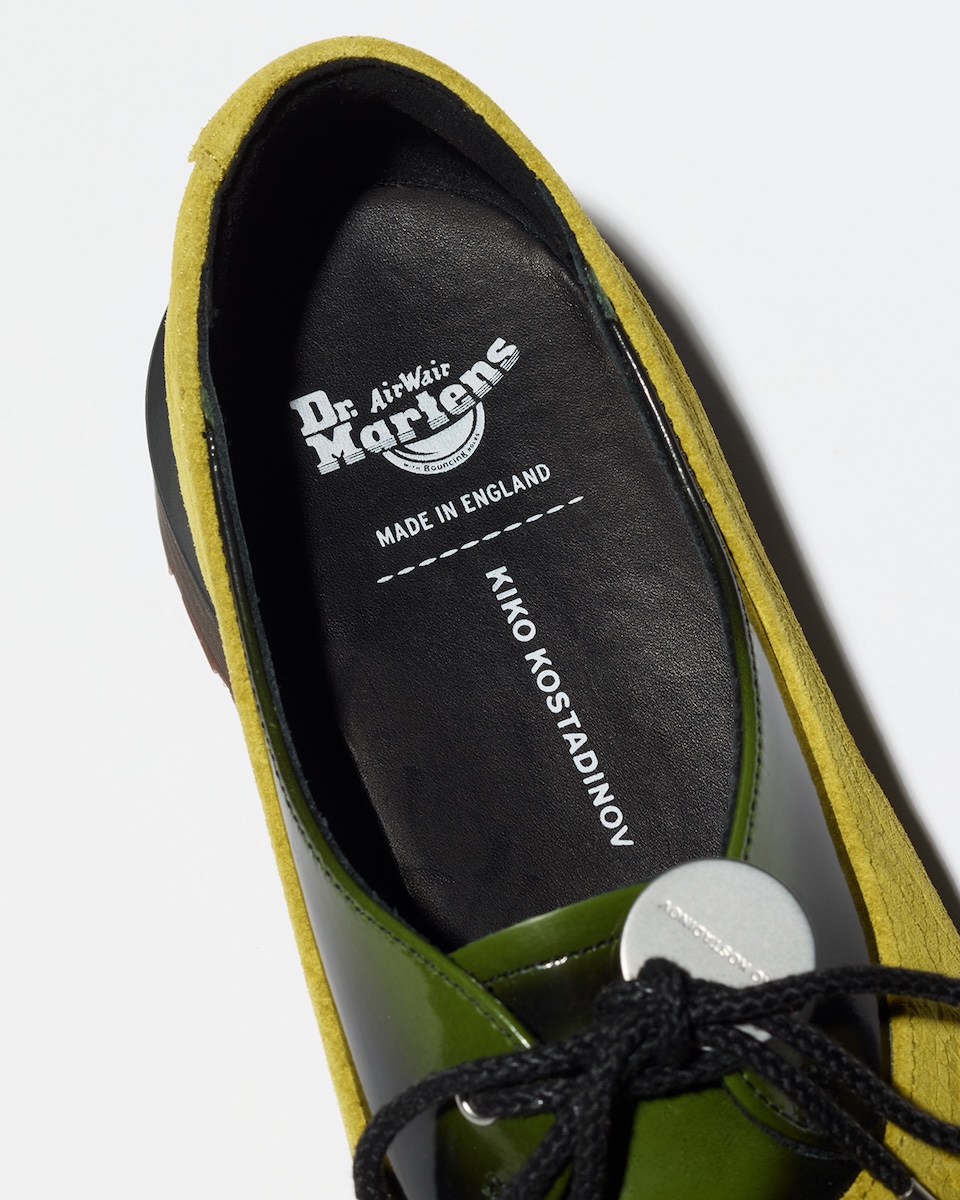 「キコ コスタディノフ(KIKO KOSTADINOV)」は3月20日、「ドクターマーチン(DR.MARTENS)」の“メイド イン イングランド”とコラボレーションしたウィメンズシューズ“トゥ ボックス シューズ”(4万9500円)とメンズシューズ“ストラップ シューズ”(4万9500円)を発売する。国内では、「キコ コスタディノフ」東京、東京・銀座のドーバー ストリート マーケット ギンザで取り扱う。また、「キコ コスタディノフ」公式オンラインストアでは、先行販売を行なっている。