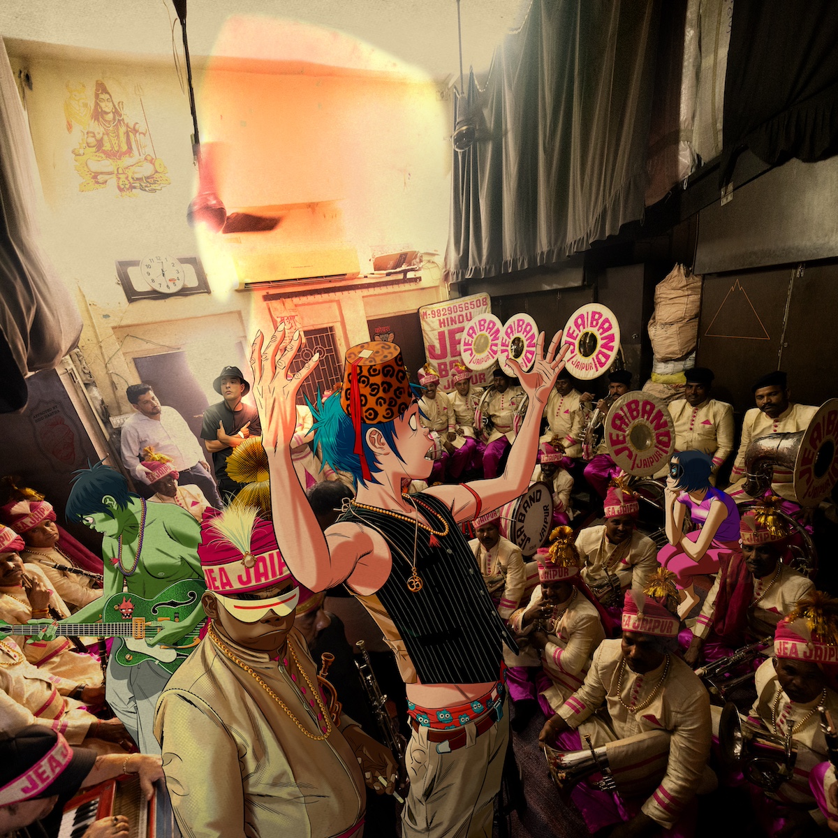 デーモン:うん。ジャイプールのウェディング・バンドだ。ジャイプールで録った。彼らはすごいんだ。部屋はすごく小さい。すごく暑い。彼らは何かをリハーサルするとき、全員が同時に演奏する。だから神経質な気質の人なら、すぐ出たほうがいい——ジェイミーみたいにね。彼はすぐ出た。彼が、まるでそこにいたかのように描写するのが僕は好きなんだ。彼は2秒しかいなかった。僕は丸一日いた。まあいいけどね。