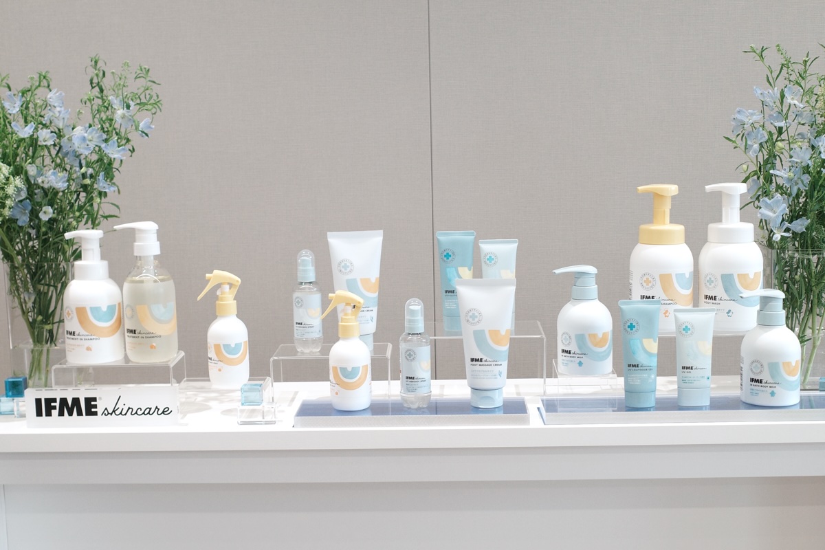 “イフミースキンケア”は2022年に誕生。「足育」から「肌育」へとカテゴリーを広げ、育児負担を減らしながら親子のニーズに応えるヘアケアやスキンケア製品を展開する。主な顧客層は20〜30代の女性。アカチャンホンポやロフトなどで販売するが、売り上げの中心はオンラインだ。近年はスキンケアアイテムからブランドを知り、その後靴を購入するケースも増えているという。