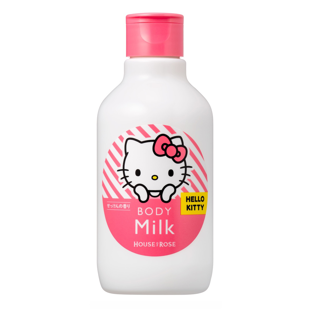 同時発売のボディーソープとボディーミルクは夏らしい石鹸の香りで展開する。吸着性トレハロースを配合する“ボディソープ KT”は、きめ細かい泡でうるおいを保った洗い上がりを実現。トレハロース、ヒアルロン酸、アミノ酸を配合する“ボディミルク KT”は角質まで浸透し、汗と共に失われやすい肌の潤いのバリアを助ける。初のコラボとなる今回のパッケージは、定番のピンクを残しつつ、ラベルとロゴに両方にハローキティをあしらった。