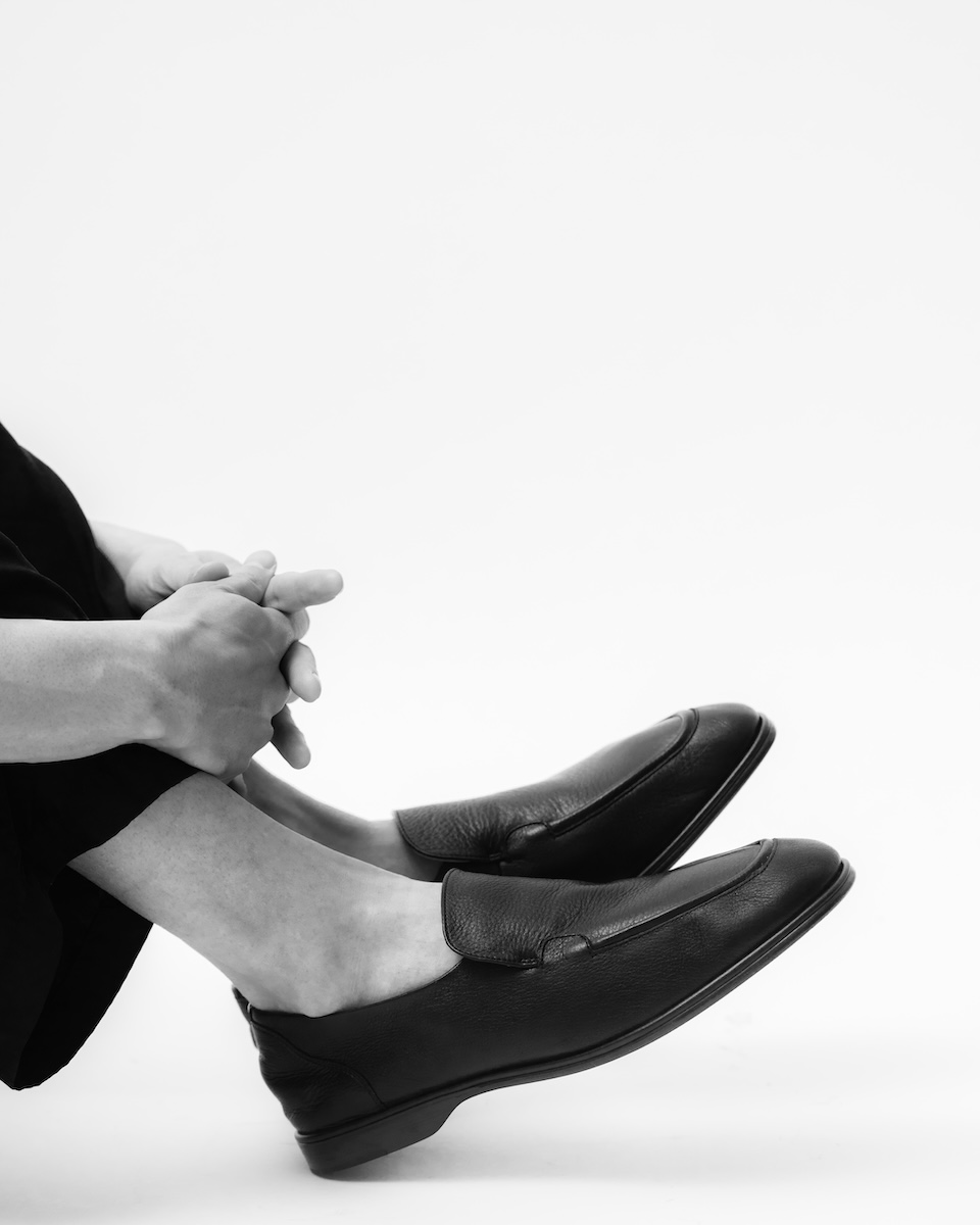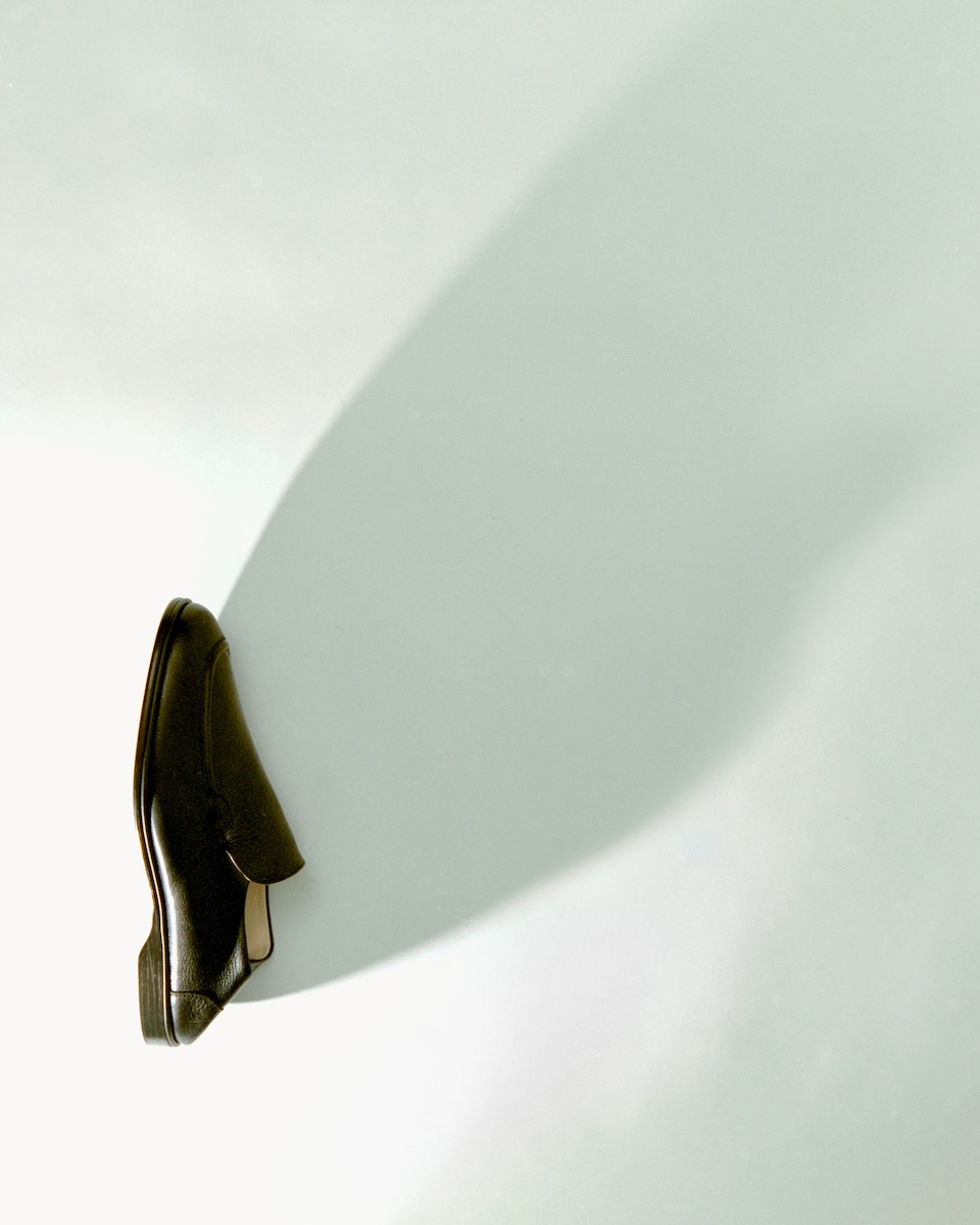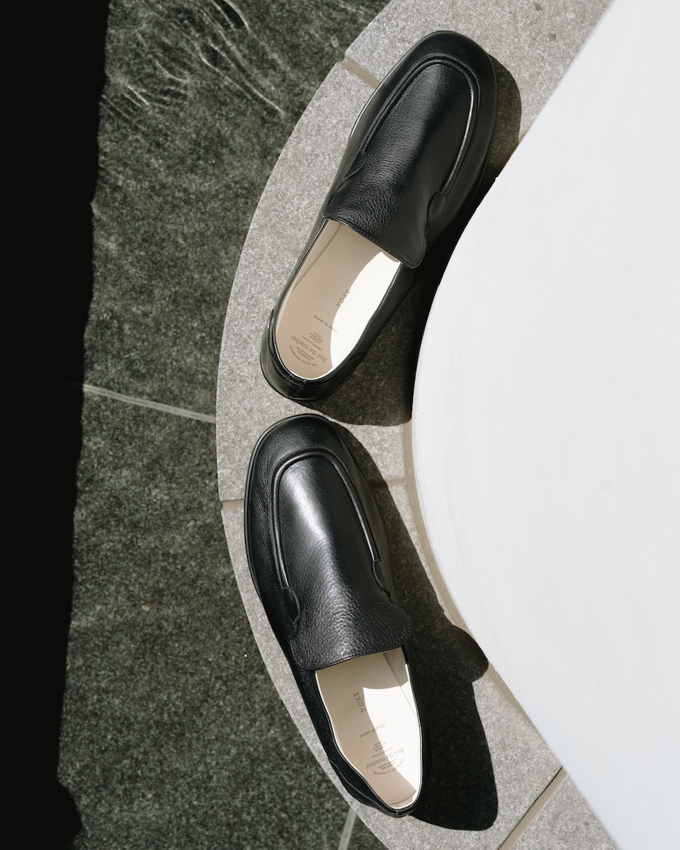 本アイテムは、フランスのビンテージローファーをベースに再構築された1足だ。かかとを踏んでスリッパのように履くことができる“ブローファー”仕様を採用し、軽やかな履き心地と高い汎用性を実現する。シーズンを問わず着用できる設計ながら、特に春夏シーズンにフィットするデザインが特徴だ。日本の伝統技術による水染めレザーを使用し、革本来の風合いを活かしつつ、経年変化も楽しめる。さらに、独自のアッパーデザインは視覚的なアクセントとして機能するだけでなく、耐久性にも優れるデザインに仕上げた。ソールには柔軟性と足馴染みの良さを兼ね備えたイタリアンレザーを採用する。ハンドメードによる本アイテムならではのディテールだ。