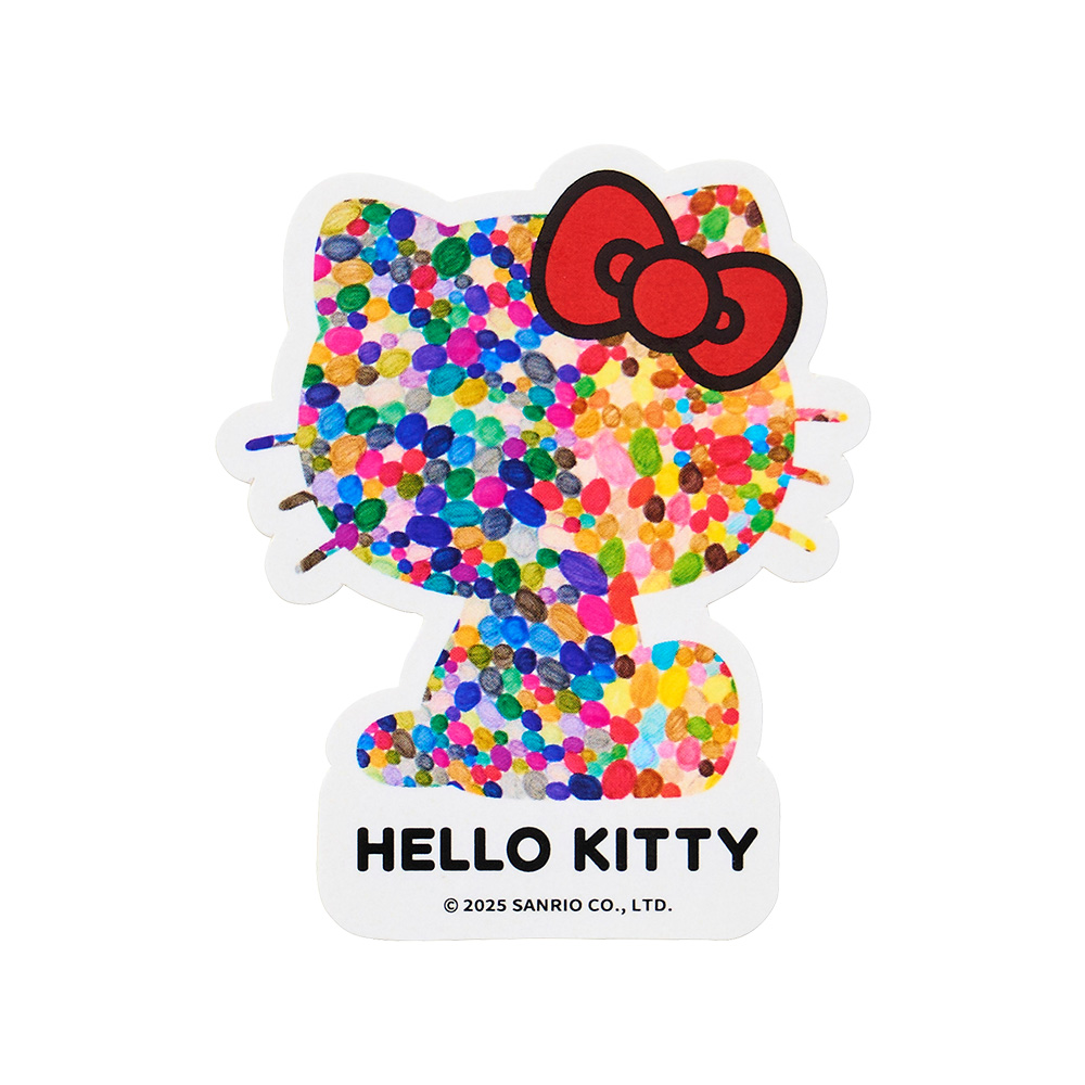 サンリオピューロランドでヘラルボニー契約作家fuco:による作品“ドチラカラデモ”とハローキティのコラボオリジナルアートグッズを販売する。ラインアップは、色彩豊かなTシャツやステッカー、缶バッチ、ステッカーを用意する。