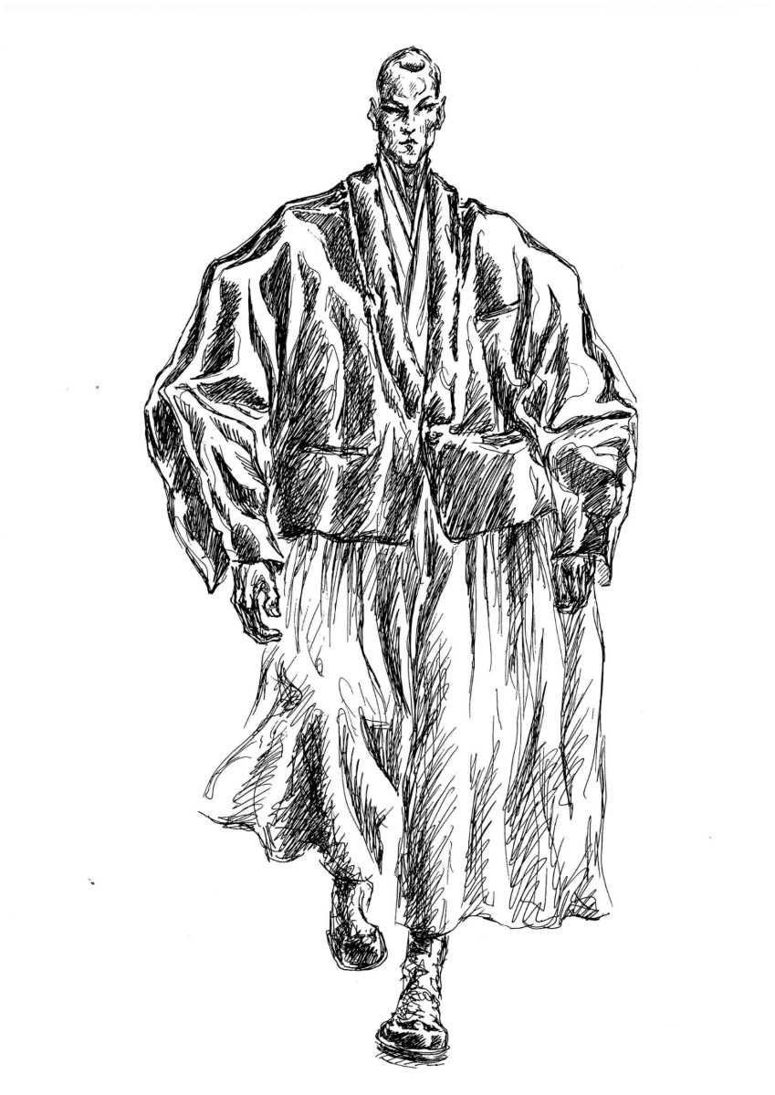 楽器奏者やそのほかの民謡歌手の衣装は、2つのコンセプトを組み合わせました。ベースとなっているのは、韓国の民族衣装であるハンボクです。ハンボクは、丈の異なるローブ状のジャケットで構成される、最も伝統的な衣装の一つです。男性パフォーマーにはやや長めでオーバーサイズのものを、女性には非常にクロップド丈のものを採用しました。