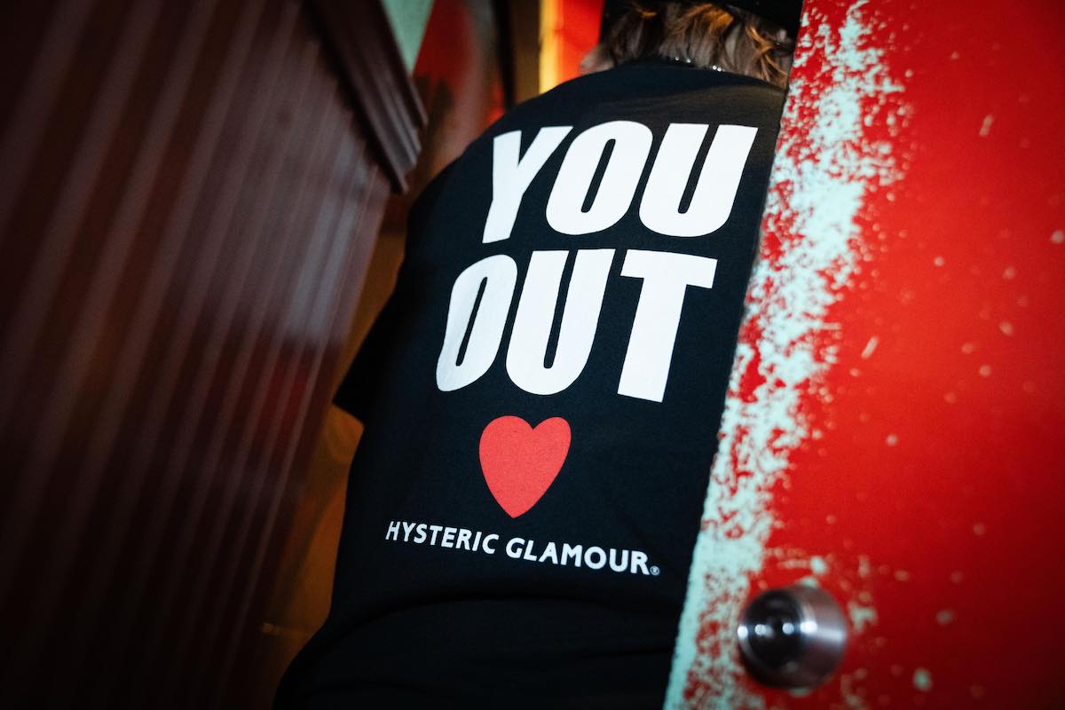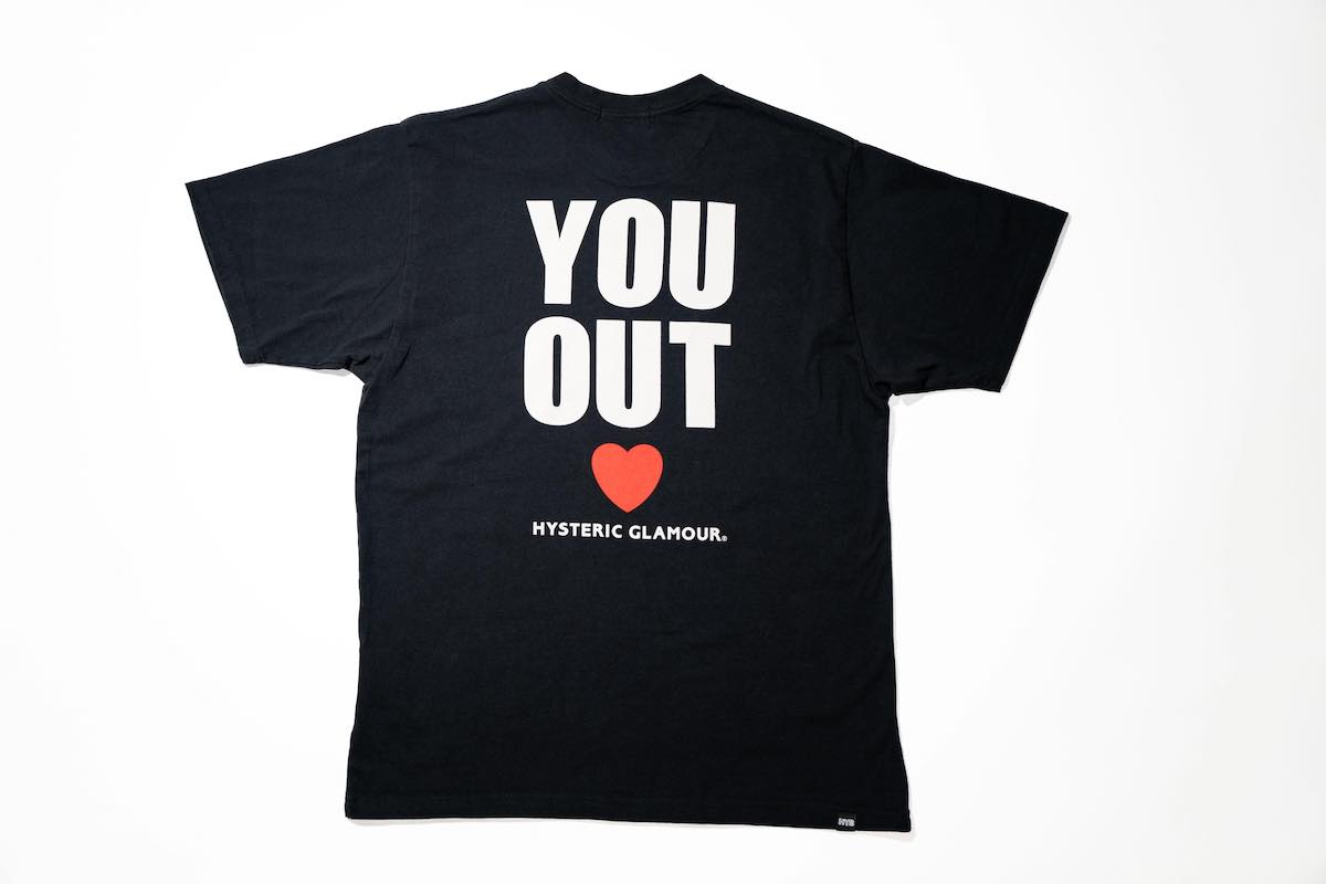 「ヒステリックグラマー × カスバ」のTシャツは1万7160円。会員制バーという性質上、顧客の安全性を重視しマナーの悪い客を出入り禁止にする同店のシステムから着想を得て、ユーモアと愛のあるグラフィックで表現した。生地は太番手の糸を通常よりも高いゲージで編み立て、肉厚でハリのある質感に仕上げている。