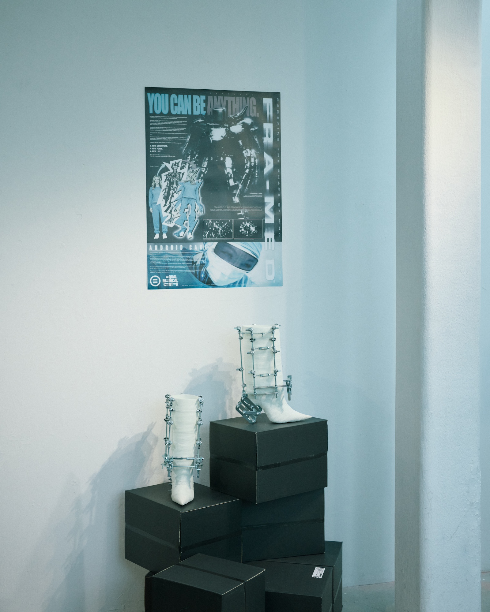 最初はポッドキャストからスタートして、そこで今回コラボをしているシューズ・デザイナーの戸田(健太)さんやCLOVEROM、PERIMETRON の神⼾(雄平)さんなどにゲストに来てもらって、どうやったら、医療とアートを接続できるか、話し合ってきました。今回の展示が、その「IGEI」の初アウトプットです。