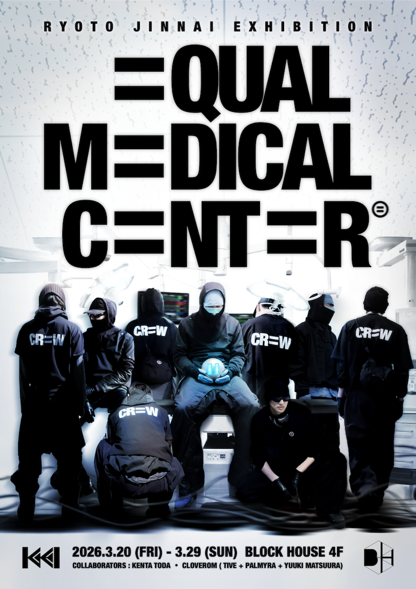 医学生(3月に卒業し、4月からは研修医)でありデザイナー/アーティストとして活動する陣内良飛による展示「イコ=ル・メディカル・センタ=(=QUAL M=DICAL C=NT=R)」が、3月20日から29日まで原宿のBLOCK HOUSEで開催中だ。