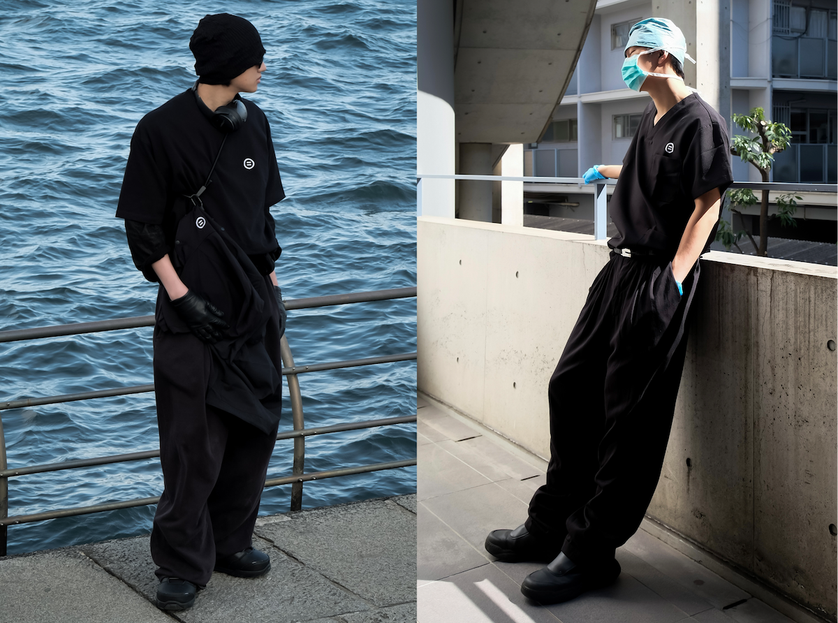 陣内:中学生の時に、母親に「ヨウジヤマモト(YOHJI YAMAMOTO)」の服を見せられて、何十年も変わらずにこんなかっこよくて、しかも黒の服ばかり作っているのは、すごくアートだなと思って、そこから好きになりました。あと、Sleepy Boy(DAI TANAKA)さんのファッションブランドで2、3年デザイナーとして関わっていた経験も活かされています。