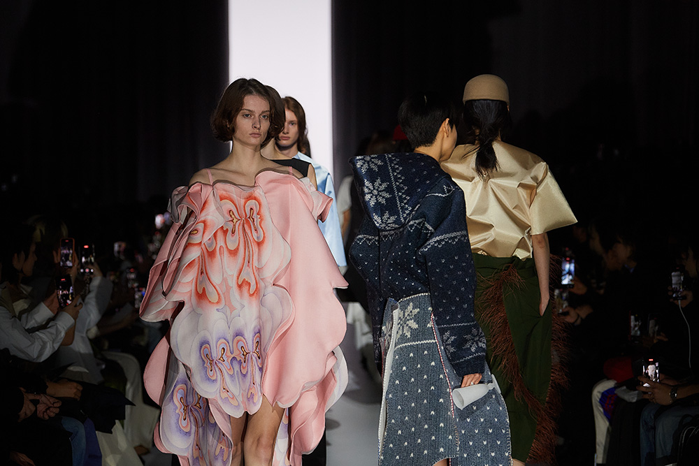 日本ブランドの得意技の一つとも言える造形美豊かなシルエットは、女性像を示すエッセンスでもある。今シーズンはカタチを起点に、体との関係性や内面の感情にまで踏み込んだ表現が目立った。彫刻的なフォームやゆがみのある曲線、装飾と機能の再解釈を通じて、女性らしさや存在感のあり方を再定義している。単なる造形の探求にとどまらず、個の視点やメッセージを内包したアプローチが交差し、現代的なエレガンスの新たな像を描き出した。(この記事は「WWDJAPAN」2026年3月30日号からの抜粋です)