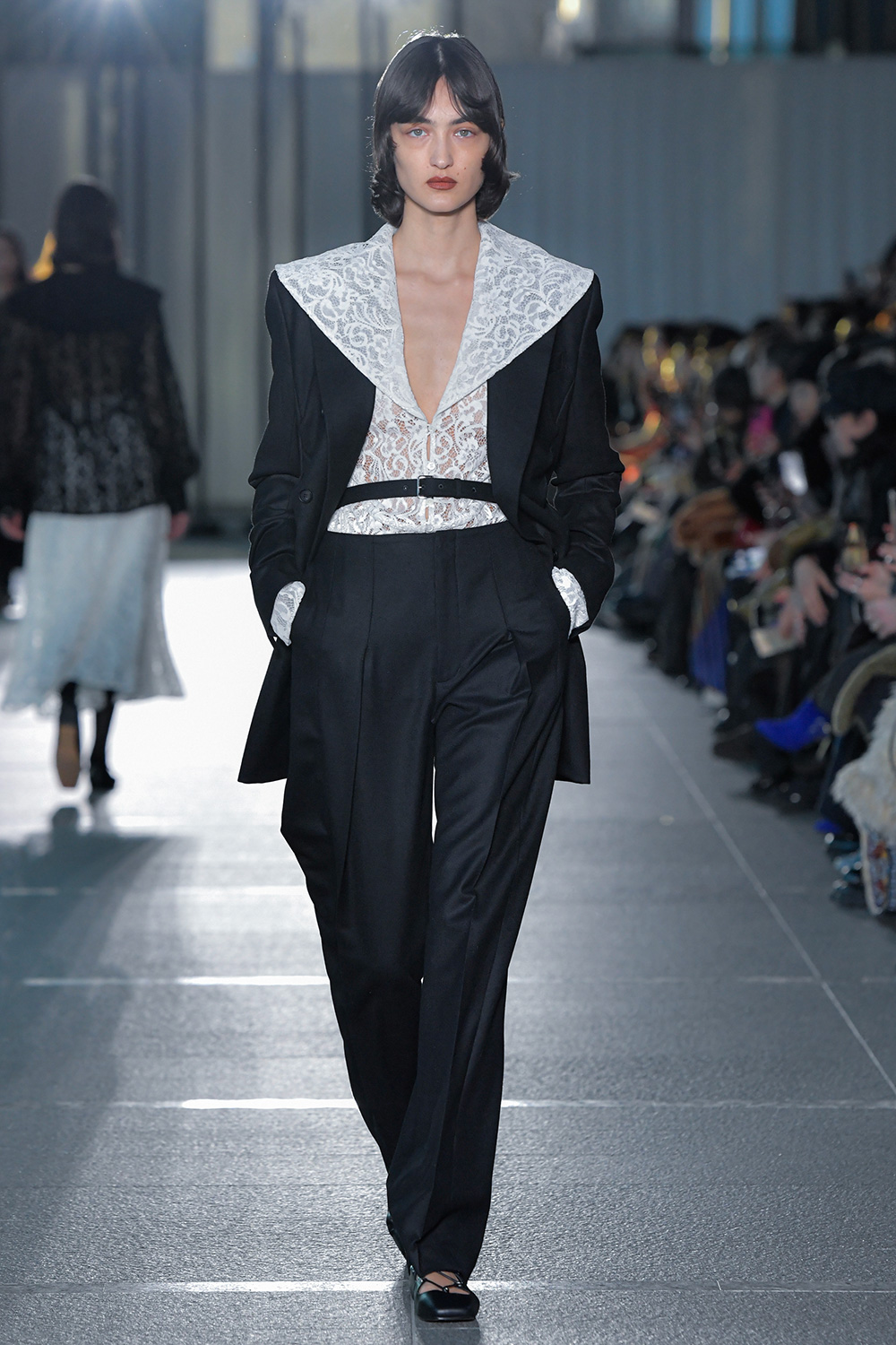 「女性らしさの輪郭」をテーマに、1920〜30年代の女性像から着想を得た。テーラリングやランジェリーの要素を掛け合わせ、構築性と柔らかさを併せ持つシルエットを提示。パニエ由来のボリュームやドレープ、サテンの質感が体の動きと呼応し、時間や記憶を想起させる表現へと昇華した。特に意識したことは「着る人のイメージ」。デザイナー自身も「年齢を重ねていく中で成熟した女性にも着てほしい」と思い、服そのものの美しさを探求したという。