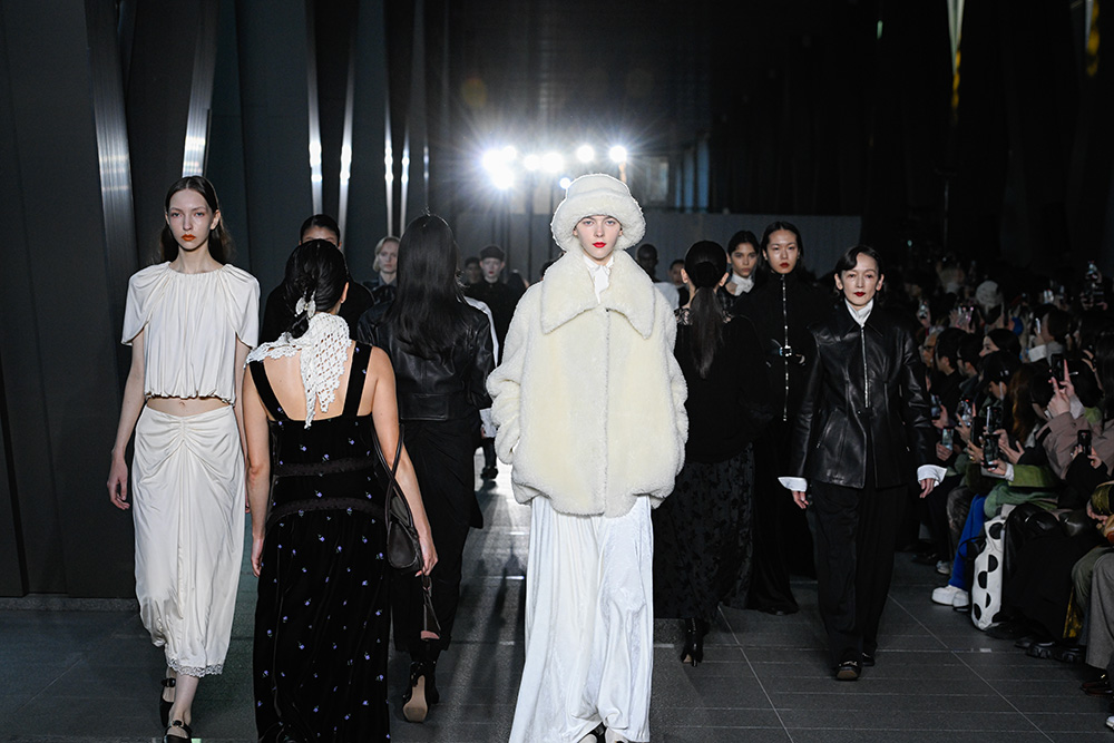 前シーズンに台頭した「日常への寄り添い」「自分らしさ」といった内向的な価値観から、女性像は緩やかに外へと広がり始めている。肌見せや極端なプロポーションを抑え、幅広い年代のモデルを起用した「フェティコ(FETICO)」、自宅から一歩踏み出した前回を経て、都心を見渡す空間を舞台とした「ピリングス(PILLINGS)」。それぞれモデルを自由にウオーキングさせることで、個を立たせる日常を提示した。人とのつながりや視点の変化が、新たな広がりを生んでいる。(この記事は「WWDJAPAN」2026年3月30日号からの抜粋です)